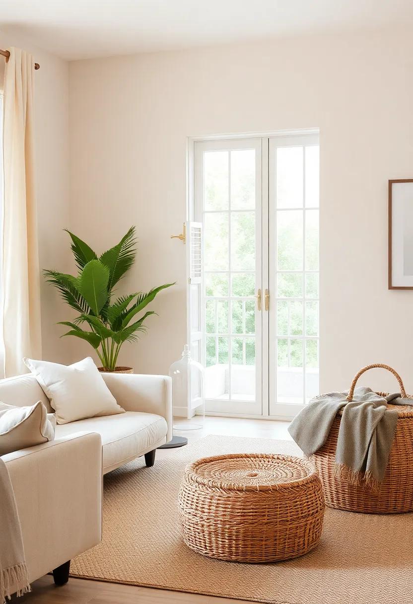 Woven Baskets: Use woven baskets for storage to add texture and functionality while complementing the natural fabric theme