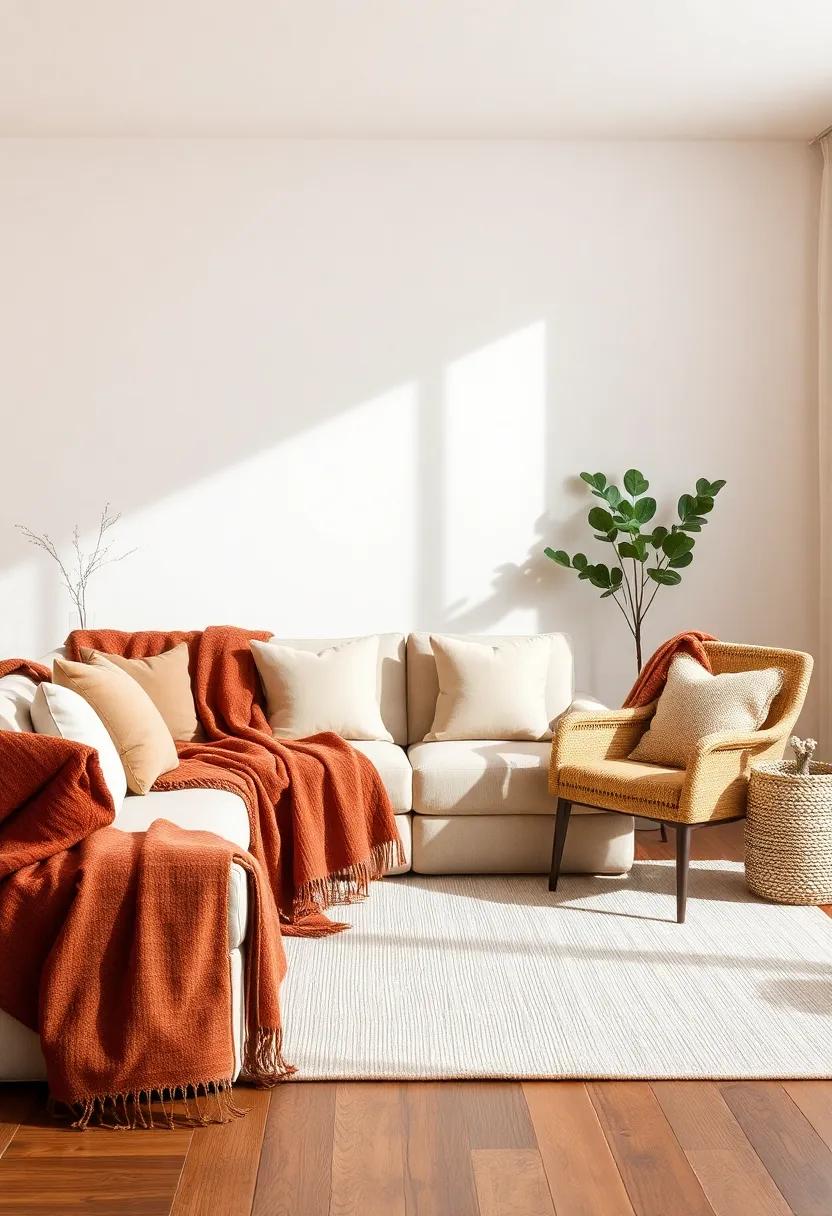 Cotton Throw Blankets: Drape cozy cotton throw blankets in rich, earthy colors over sofas and chairs for extra comfort and style