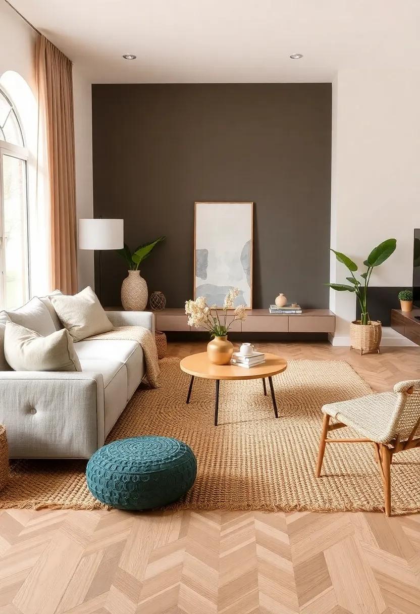- Natural Fiber Rugs: A jute or sisal rug enhances the earthy vibe.