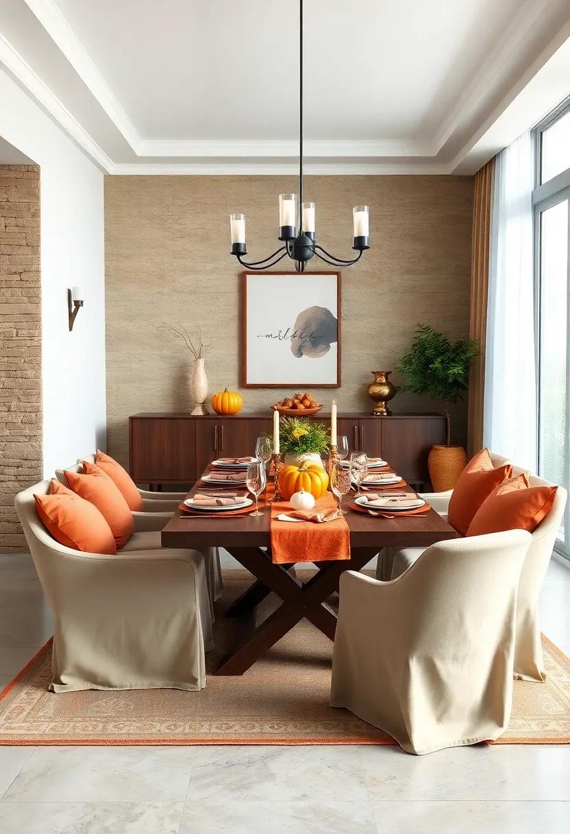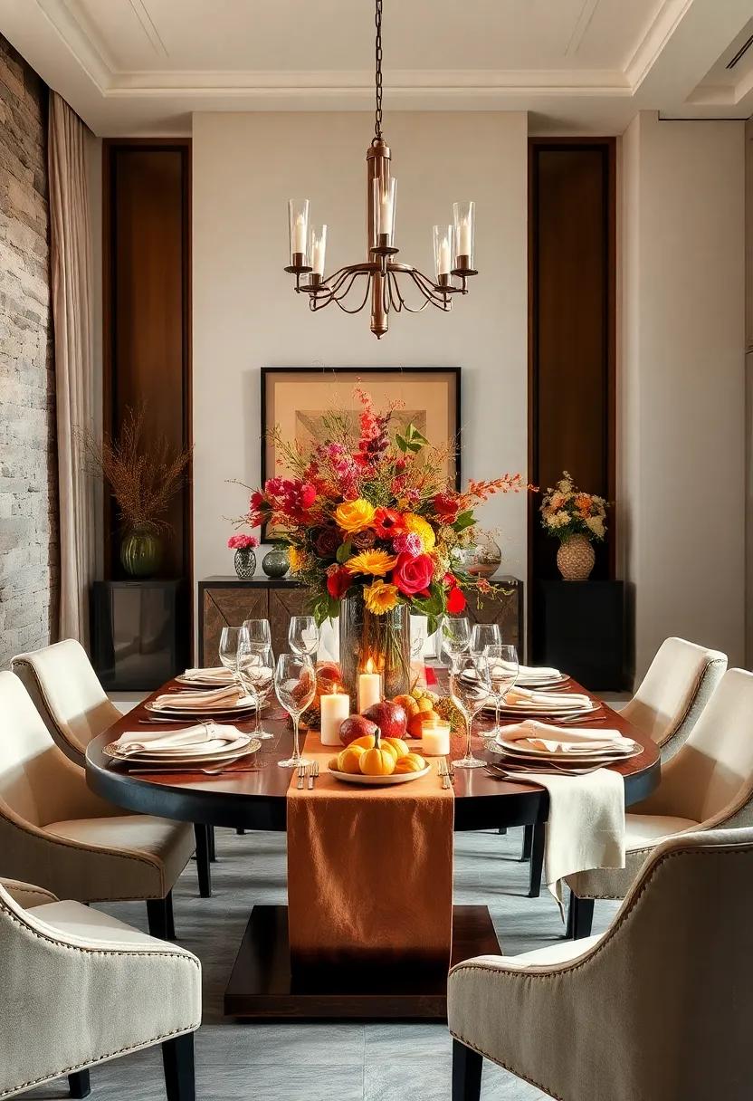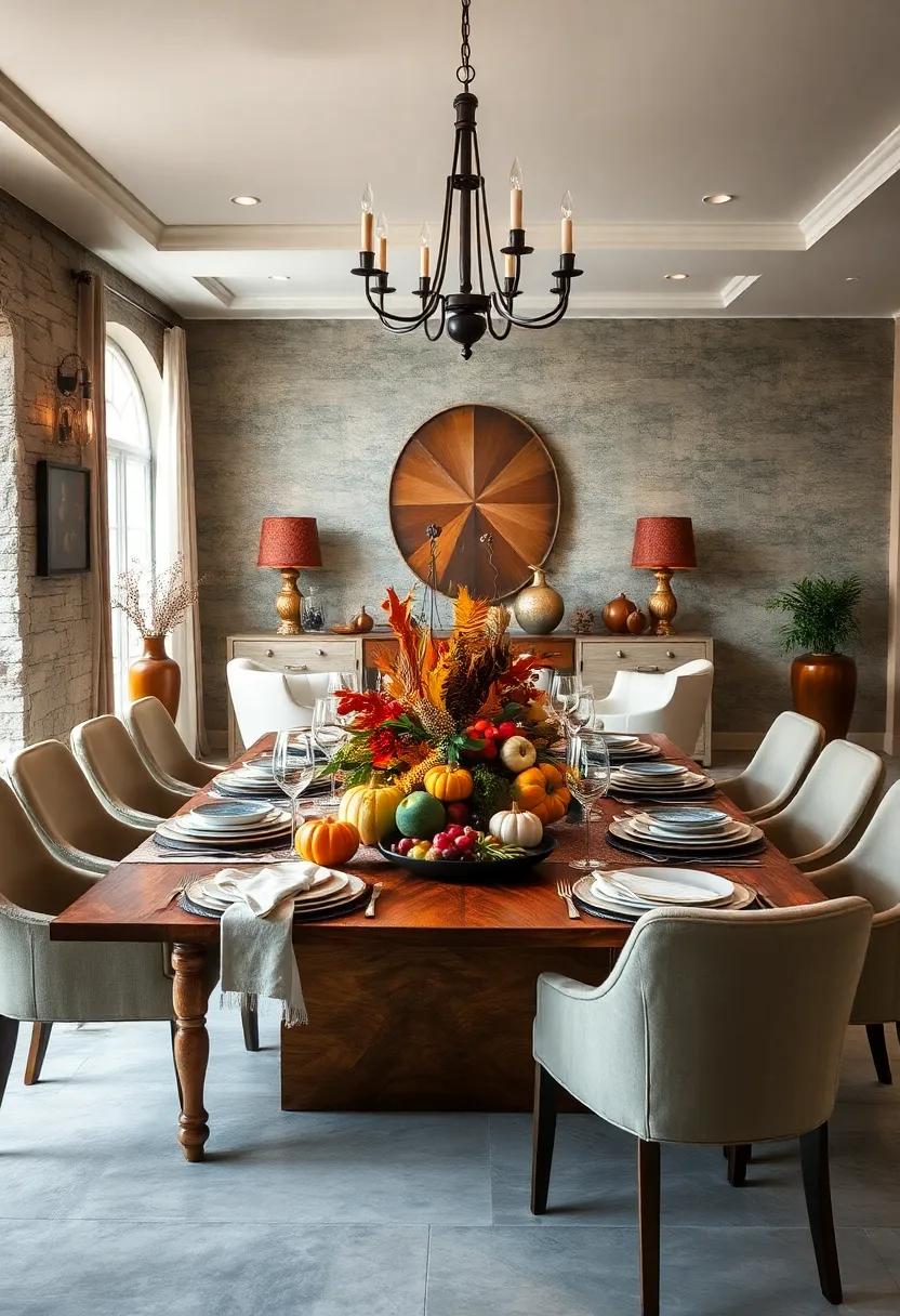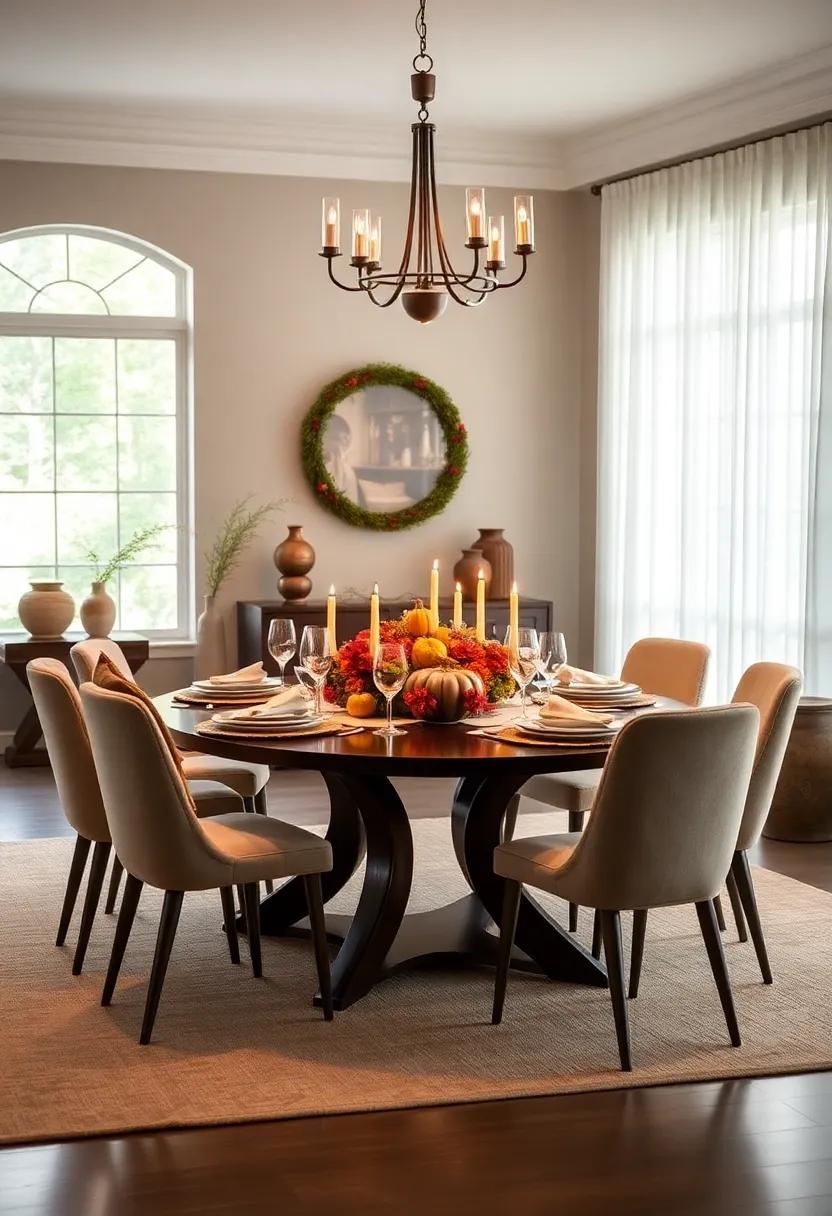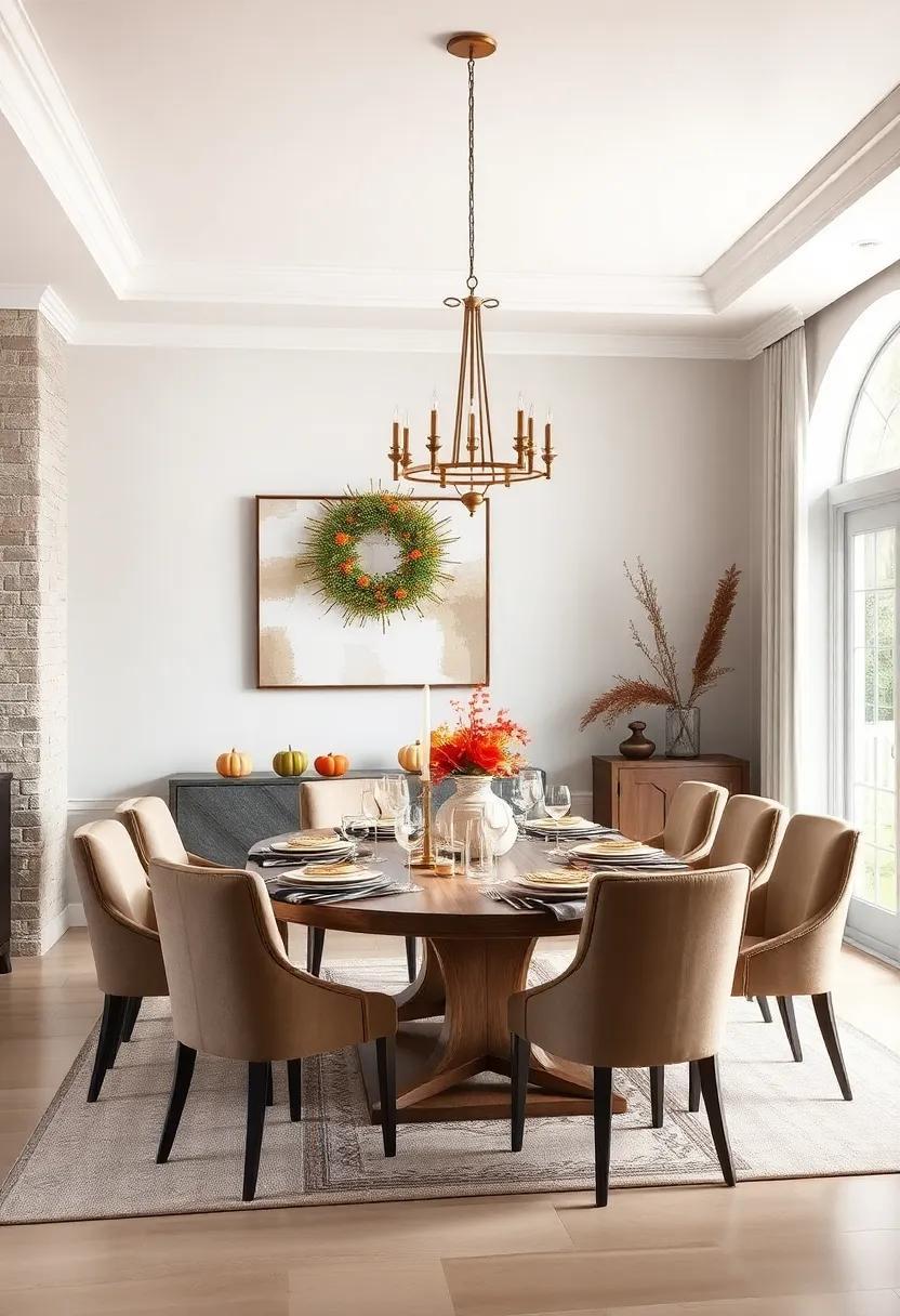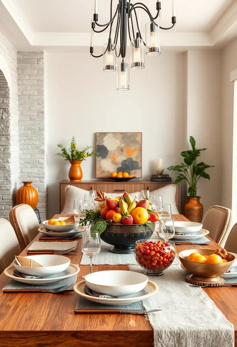 Incorporating seasonal fruits and nuts into your dining room decor not only adds a splash of color to your table settings but also brings a sense of warmth and festivity to your Thanksgiving gathering. Choose ceramic or glass bowls that reflect the elegant aesthetic of your dining room. Consider using a mix of textures and colors to create a visual feast that complements your overall theme. Rich autumn hues like deep reds, burnt oranges, and earthy greens can beautifully adhere to the seasonal spirit, while translucent glass can offer a modern touch that showcases the natural beauty of your chosen bounty.