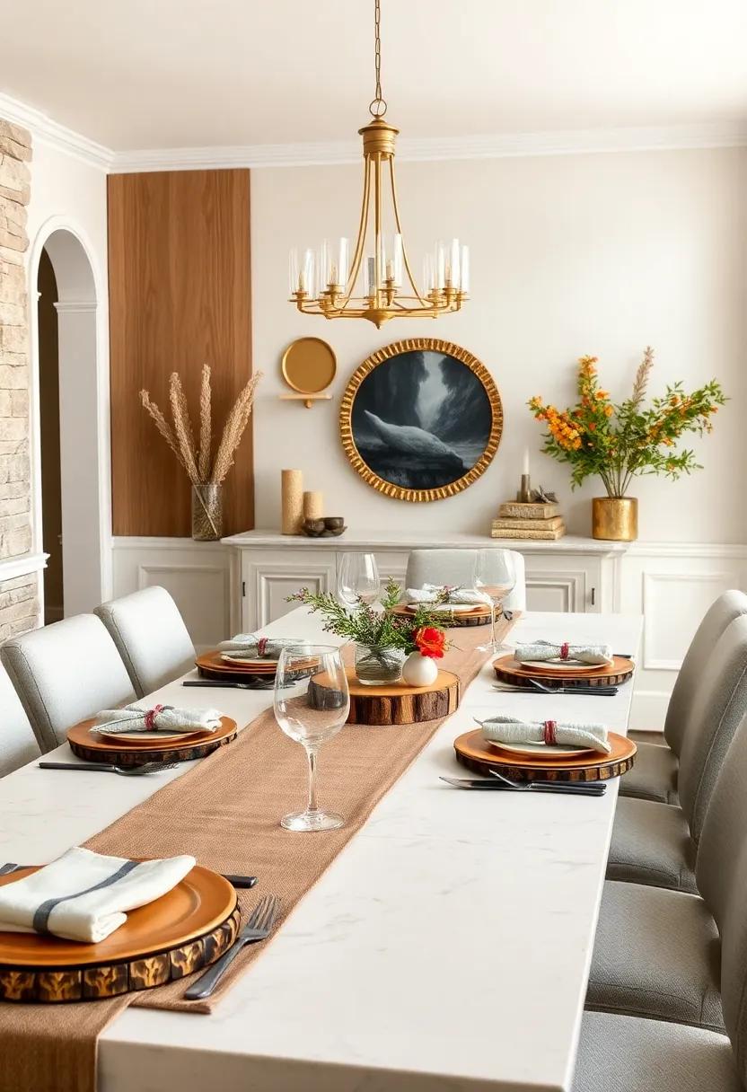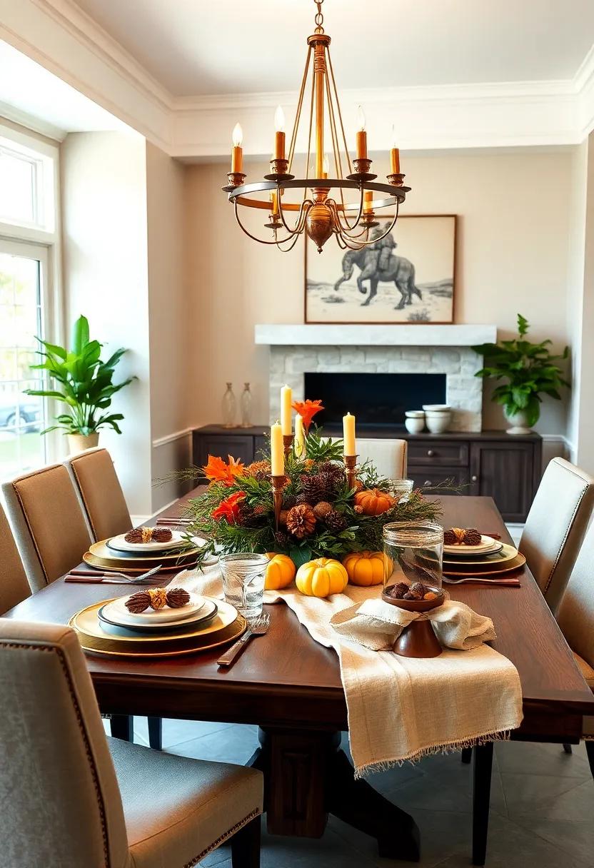 Embrace Nature: Adorn your dining table with a centerpiece of seasonal foliage, pinecones, and small pumpkins for a touch of rustic elegance