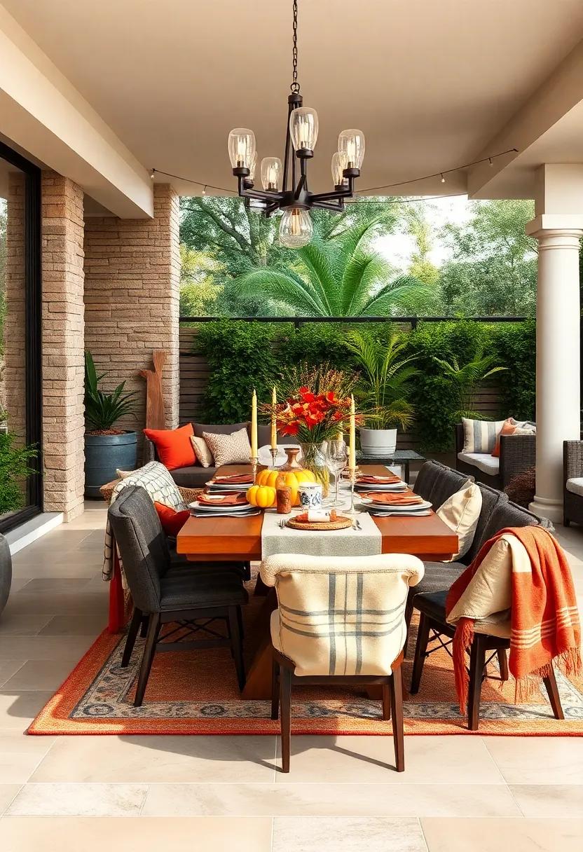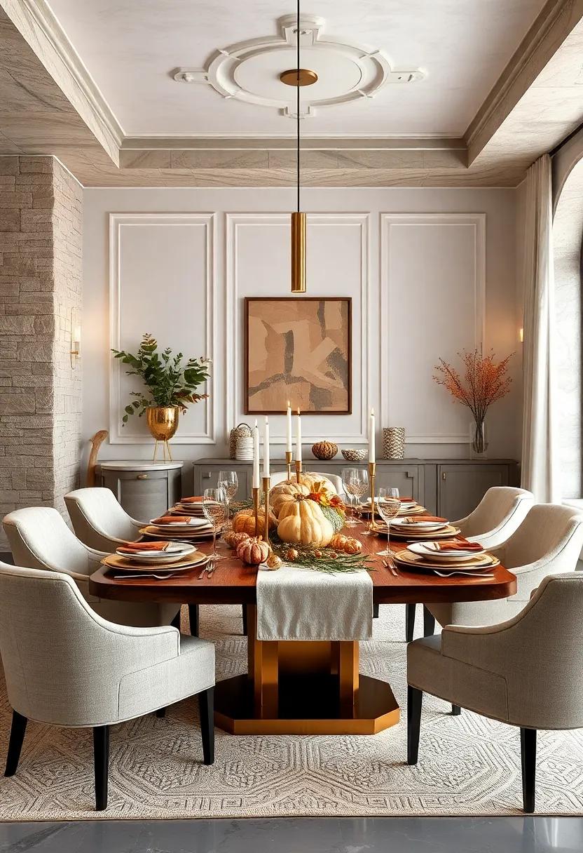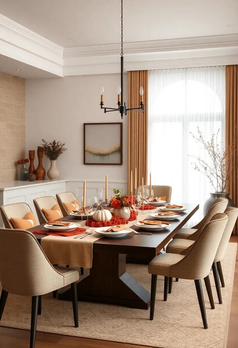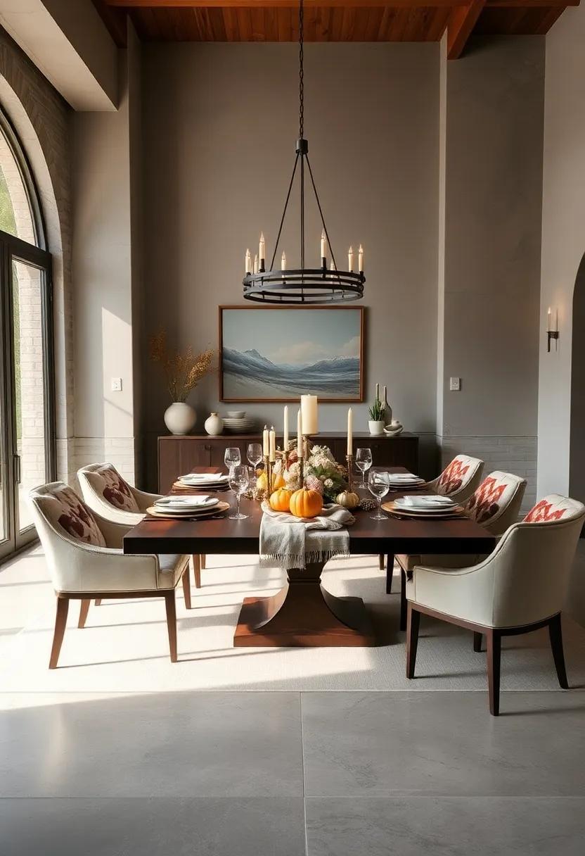 To make your space even more enchanting, consider painting an accent wall in a deep, earthy hue or adding textured materials like wood and stone to your décor. Complementary decor elements might include sage green napkins, rusty orange candles, and chocolate brown dinnerware. A rustic wooden table adorned with a layered centerpiece of greenery and terracotta vases can serve as the perfect focal point for your gathering. You may also opt for a rich, metallic finish in gold or bronze for added elegance, making the overall design not only festive but also sophisticated.