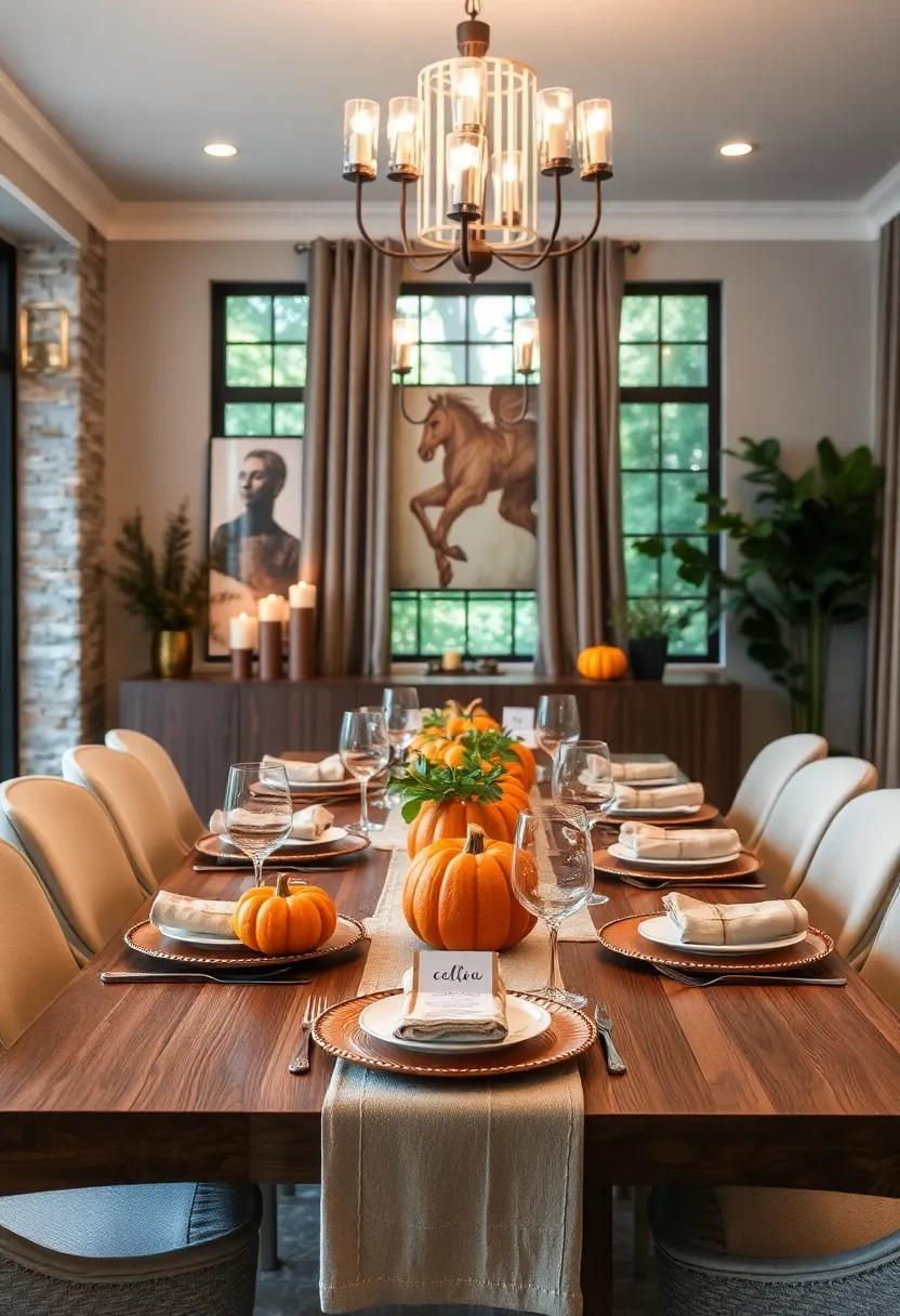 Infusing a touch of whimsy into your Thanksgiving dining experience can be as simple as using small pumpkins or gourds as name holders for your place cards. These charming little fruits not only embrace the festive spirit of the season but also create a cohesive autumnal theme that delights the eye.Transforming your dining table into a picturesque harvest scene is easy, and the playful nature of these natural elements adds an elegant twist to your décor. Each guest can have their very own personalized pumpkin or gourd to guide them to their seat, sparking conversation and setting a warm, inviting tone for your gathering.