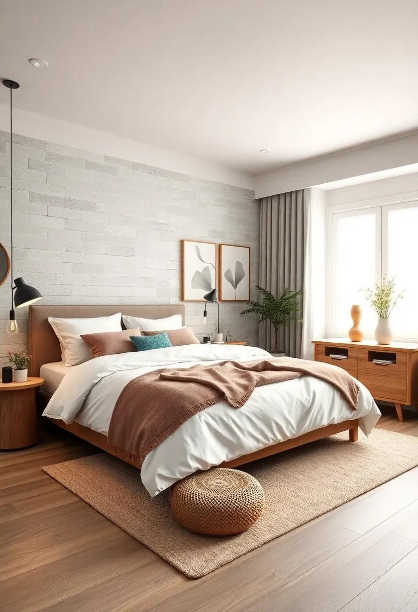 Mirrors can transform a bedroom from ordinary to extraordinary with their ability to manipulate light and create an illusion of space. When placed strategically, large wall mirrors can reflect natural light streaming in from windows, making the room feel brighter and more airy. Consider positioning a mirror across from a window or light source to maximize these effects. Additionally, decorative mirrors with minimalist frames can serve as eye-catching focal points, adding a touch of Scandinavian elegance while keeping the serene atmosphere intact.