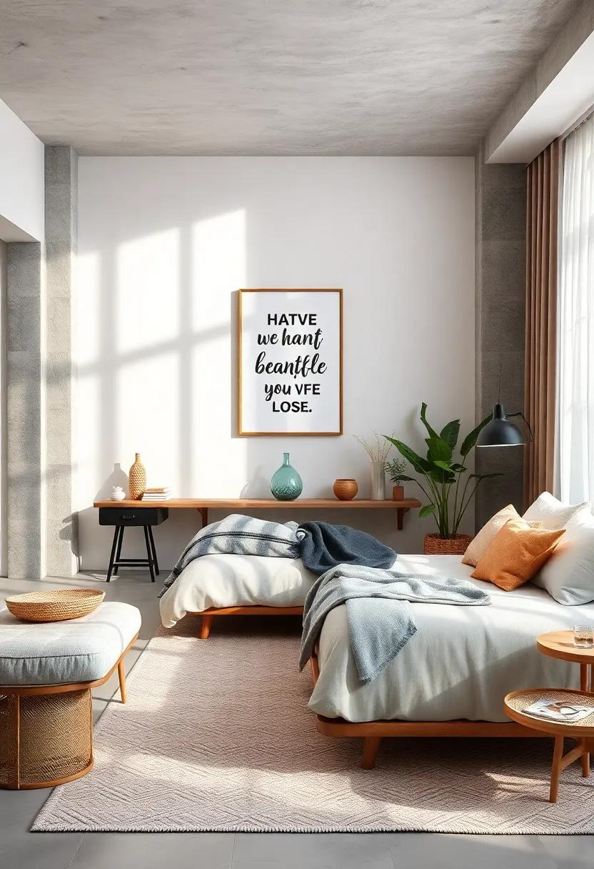 Monochrome Accents: Introduce subtle contrasts through black and white decor to create visual interest without overwhelming the senses