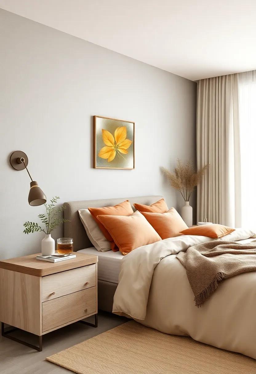Wooden Accents: Introduce wooden decorative items or furniture to create a warm, grounded feeling in your bedroom