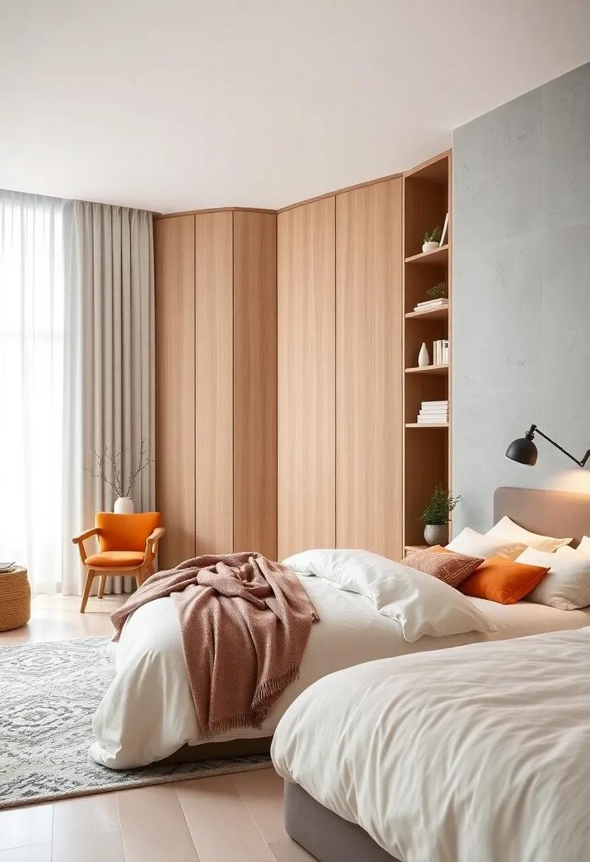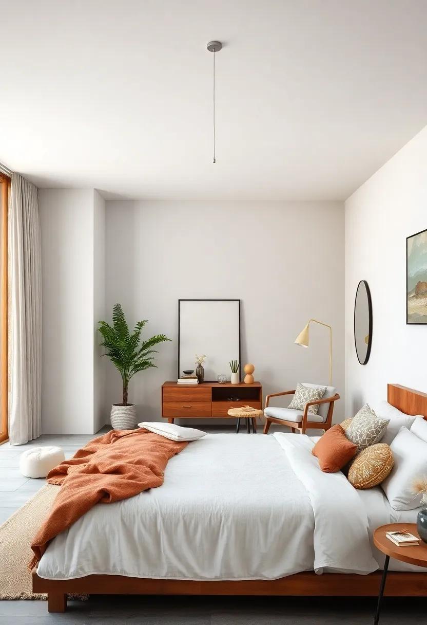 Incorporate lighting fixtures with fluid shapes like a pendant lamp or a floor lamp with a curved design. These pieces serve as functional art while maintaining a sense of harmony with the soft lines throughout the room. To achieve a cohesive look, select accessories that echo these rounded forms—think ceramic vases, round mirrors, and even artwork with flowing designs. When all these elements come together, they foster a serene environment that encourages relaxation and mindfulness in your Scandinavian bedroom retreat.