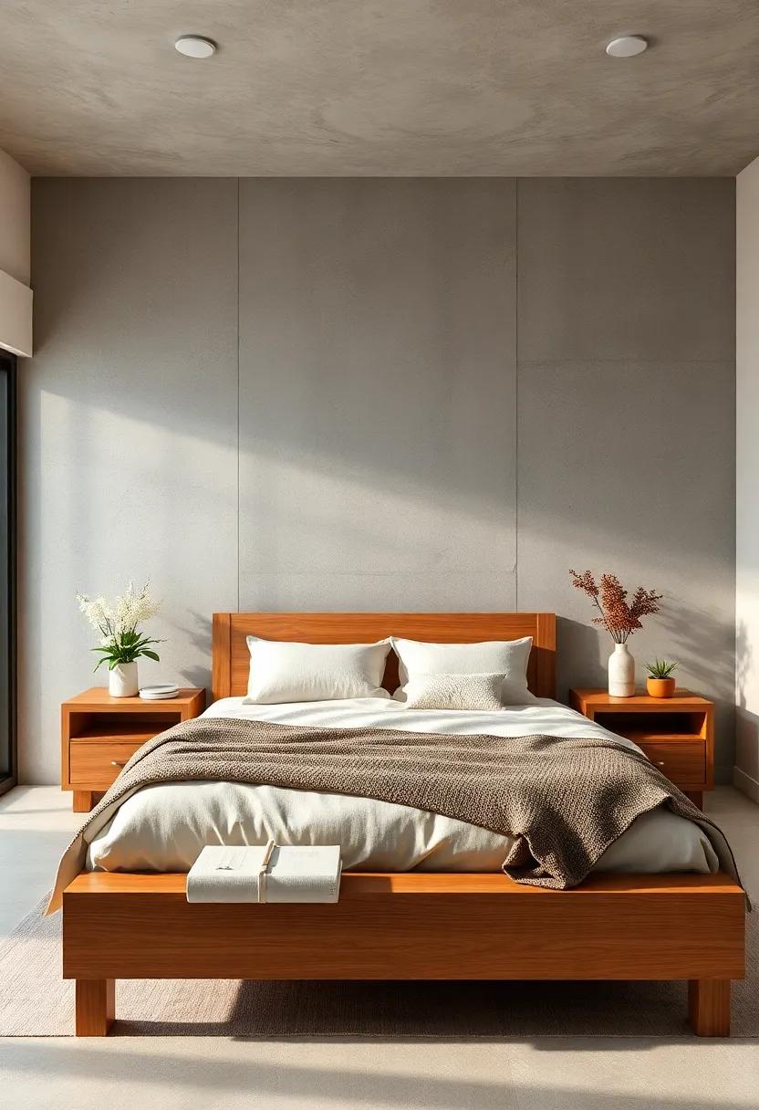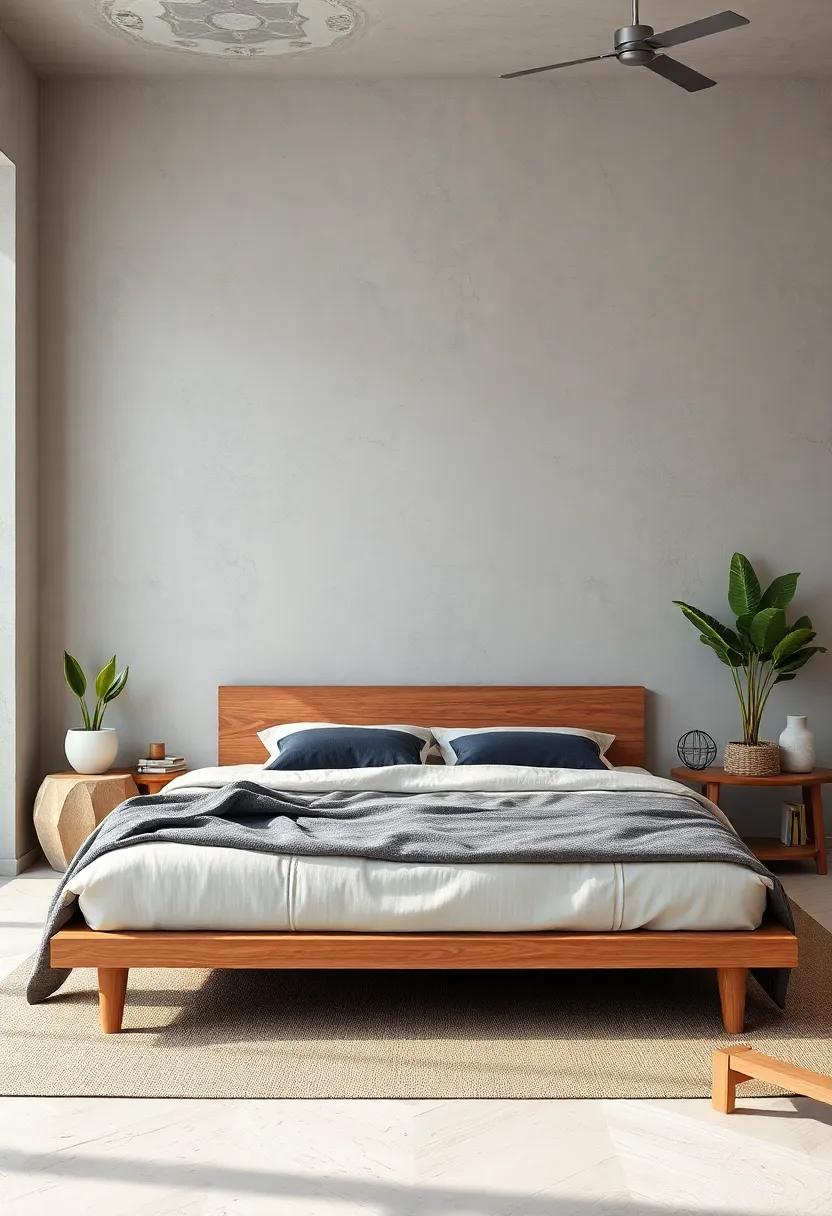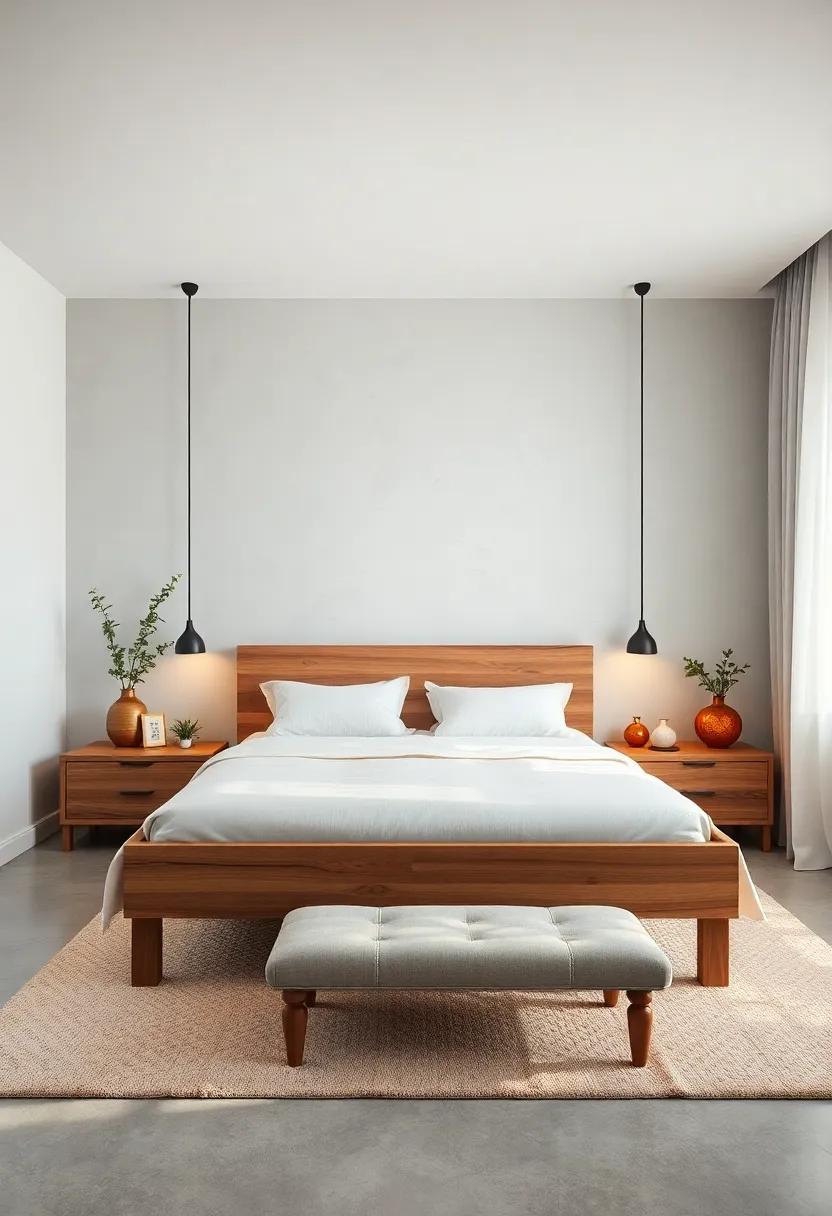 Incorporate a Wooden Bed Frame: Select a simple, handcrafted wooden bed frame to serve as the focal point of your serene space