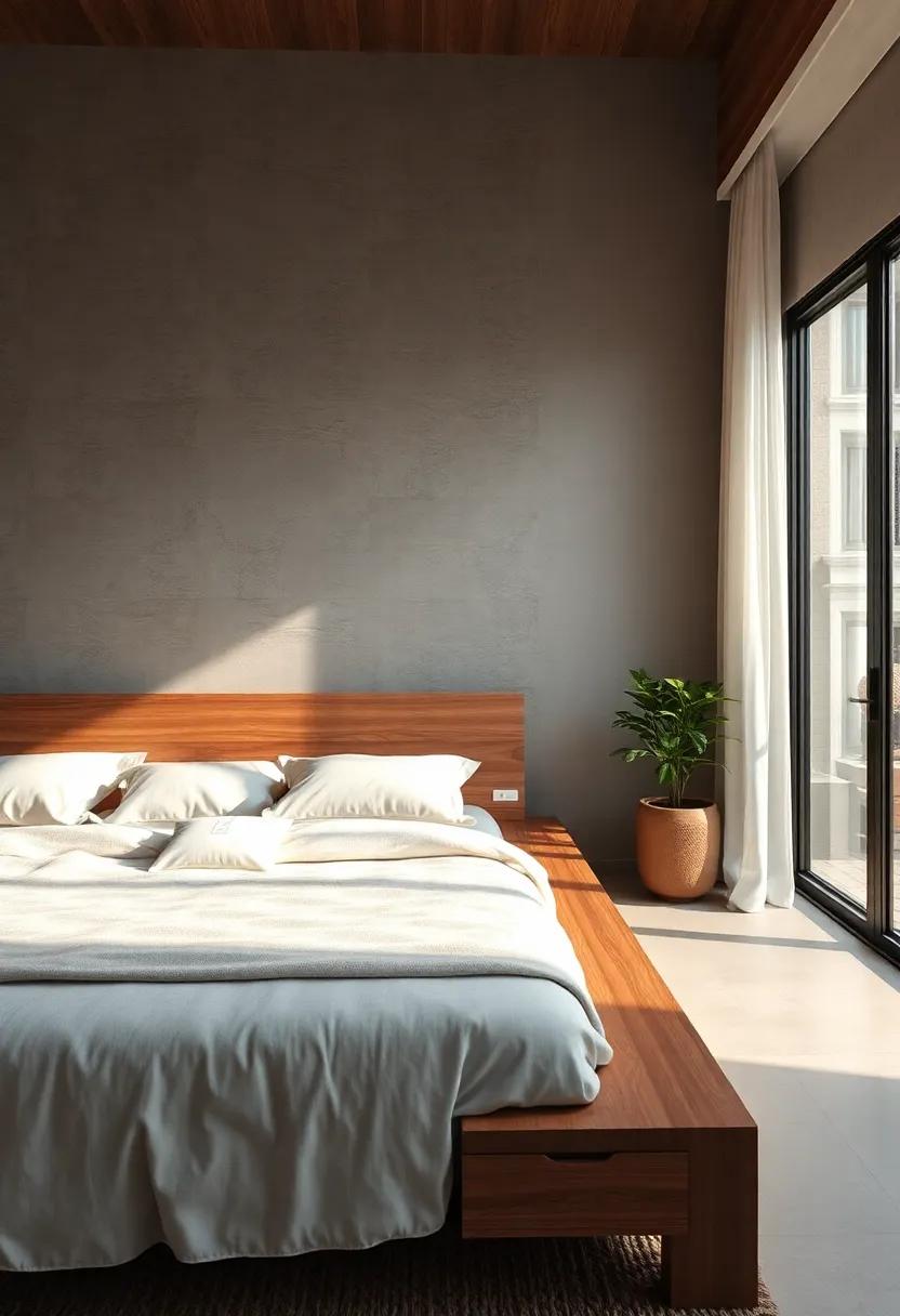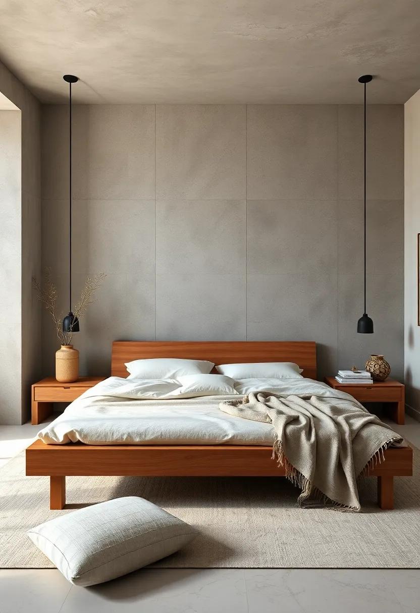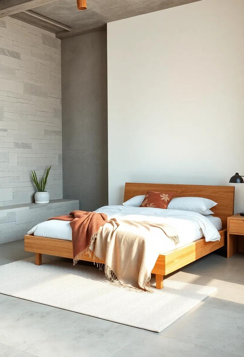 To enhance the cozy vibe of your minimalist bedroom, incorporating soft flooring through natural fiber rugs is an excellent choice.Rugs made of jute and wool not only provide a tactile contrast to your wooden bed frame but also add texture and warmth to the overall aesthetic. Jute, with its earthy tones and durable nature, serves as an ideal foundation that complements the minimalist style, while wool offers luxurious softness underfoot, making it perfect for a tranquil retreat. Consider the following attributes when selecting your rugs: