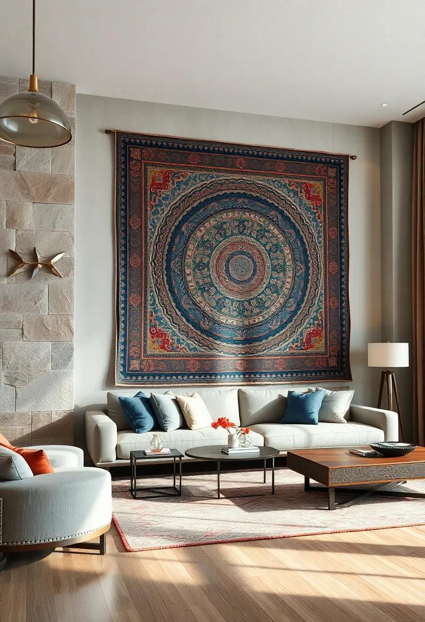 Tapestry Hangings: Use large tapestries to add color and texture that also serves to divide spaces with cultural flair, creating a cozy atmosphere