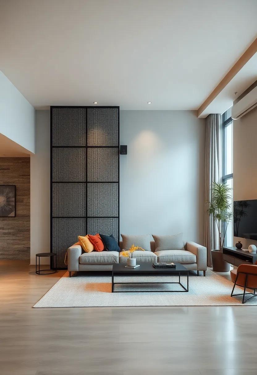 Artistic Panels: Install large art panels or wall hangings that act as statement pieces while partitioning the room without affecting the space’s flow