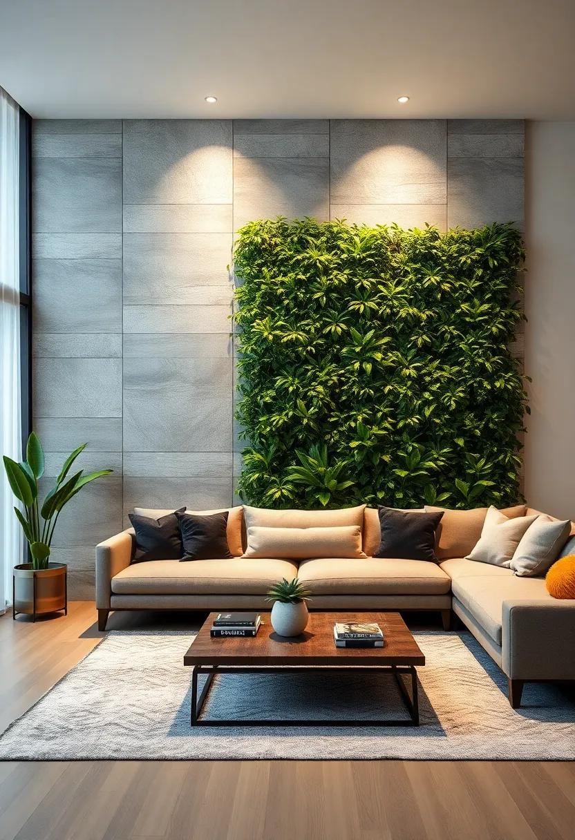 Indoor Greenery Walls: Bring the outdoors inside by incorporating living plant walls as natural dividers, promoting relaxation and breathing life into your living room