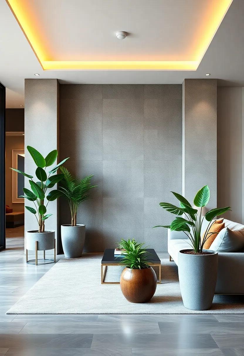Incorporating large freestanding planters in your living room can create stunning natural dividers that not only separate spaces but also infuse life and color into your home. Consider using these planters to guide the flow of your living area, such as placing them strategically between a cozy reading nook and the main seating area. This technique enhances the sense of intimacy in each space while fostering an inviting ambiance that makes the room feel more cohesive.Choose plants with varying heights and textures to add depth, and opt for planters that align with your overall decor theme, whether it’s modern, rustic, or eclectic.