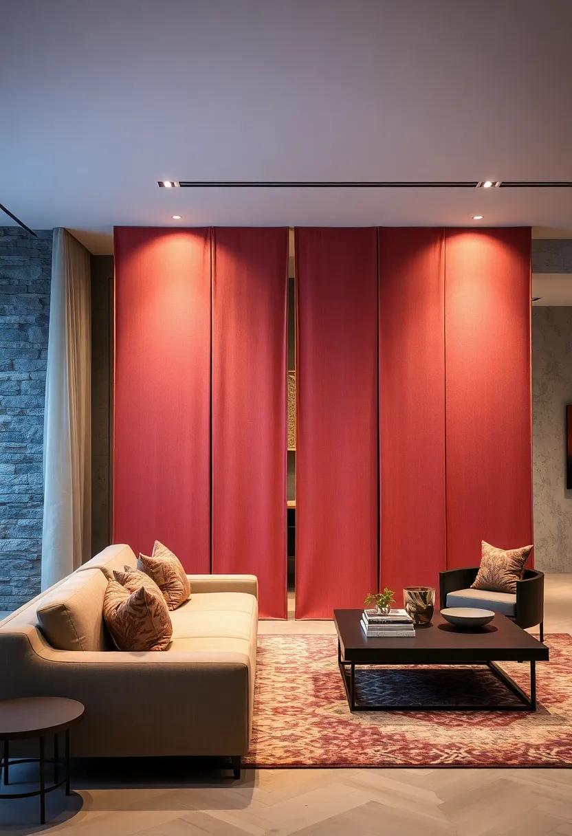 Fabric-Covered Room Dividers: Choose soft, fabric-covered dividers that add texture and warmth, perfect for creating intimate areas without permanent changes