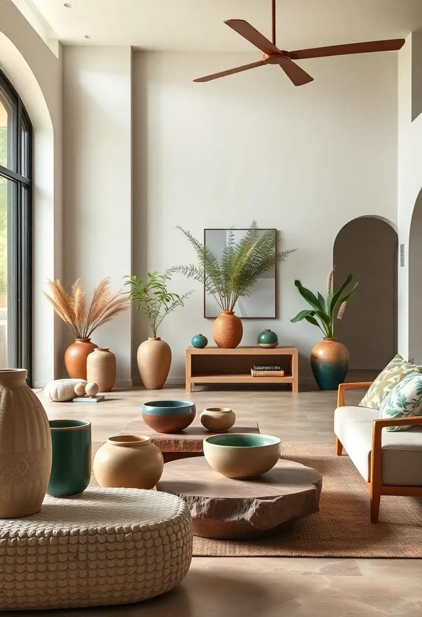 Handcrafted Pottery: Use artisanal ceramic bowls or vases to add character and artfulness to your spaces, celebrating handmade craftsmanship and sustainability