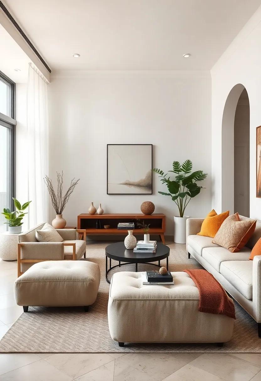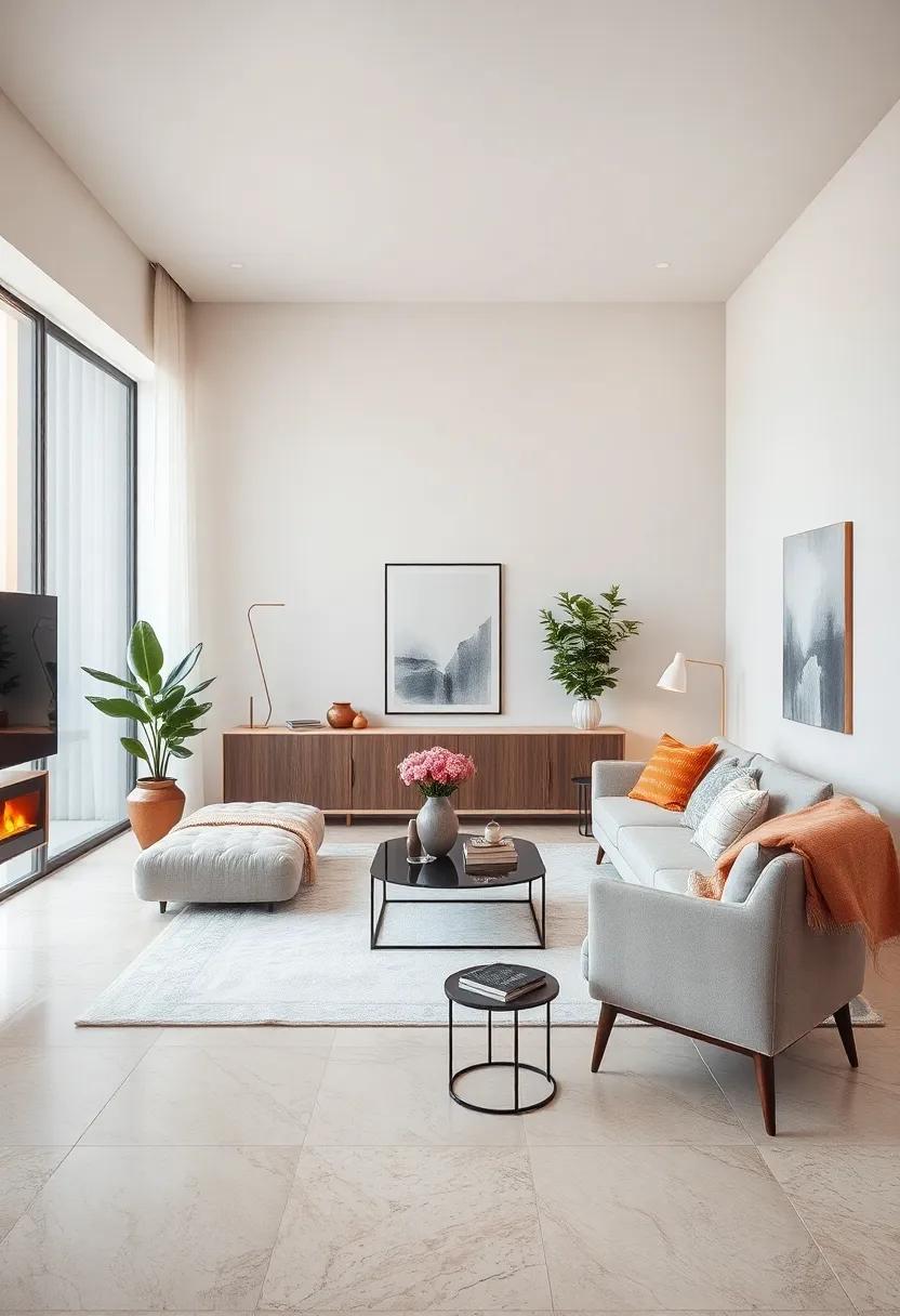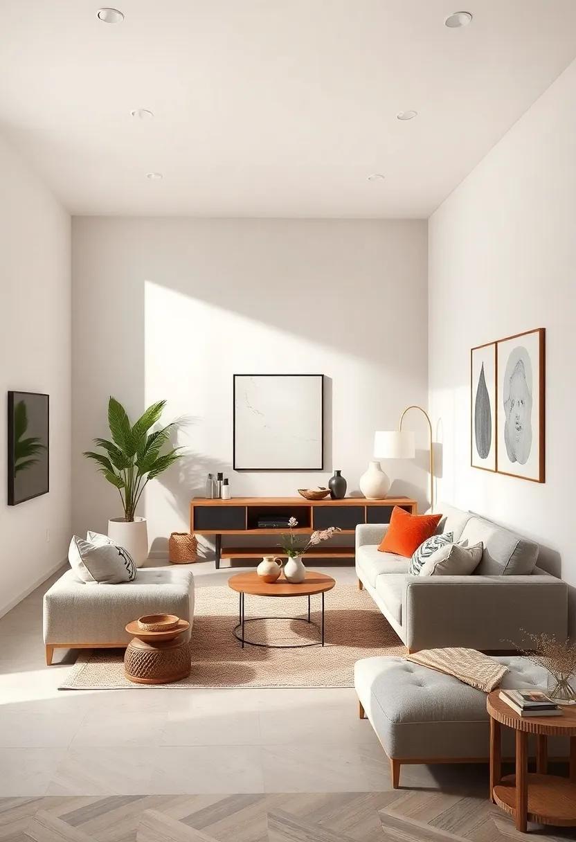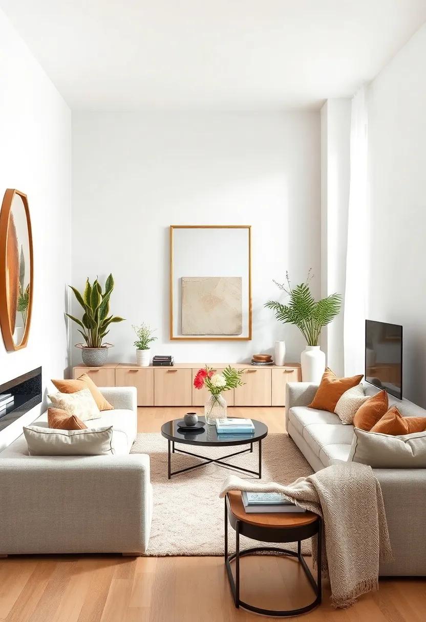 Incorporating these elements not only helps maintain a minimalist design but also infuses personality into your living room. Your space becomes a reflection of tranquility and thoughtfulness, where each piece tells a subtle story, enhancing the overall aesthetic.