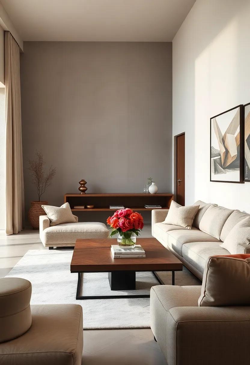 Next, consider accent pieces, such as slim shelves painted in a slightly darker hue than your walls. These can display delicate decor or potted plants,enriching the visual dynamics without abrupt contrasts. In selecting artwork or wall decor, opt for sepia-toned prints to maintain cohesion while introducing a hint of character. You might even incorporate a muted wood element, like a beige oak coffee table, which can serve as a central gathering point while seamlessly blending with the overall palette, creating an inviting atmosphere that celebrates simplicity.