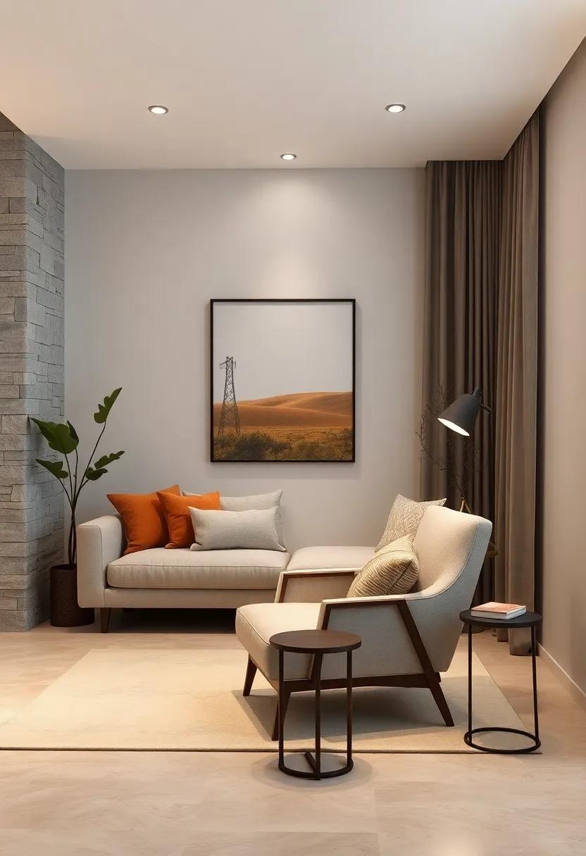 In addition, explore various lamp designs that harmonize with your neutral palette, such as those with natural materials like wood or fabric shades. These selections can definitely help maintain warmth in the room while keeping the overall look crisp and uncluttered. when positioning your lamps, create focal points by placing them near key furniture pieces, such as your favorite armchair or a minimalist sofa. Not only will this enhance the practicality of your space, but it will also add depth and visual interest, inviting both style and comfort into your home.