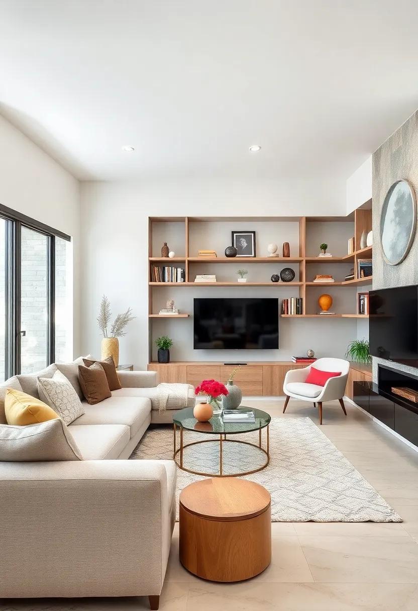 further enhancing this airy appeal can be accomplished through the use of multi-functional furniture and open shelving. choose items like an ottoman with storage or a coffee table that can double as a workspace to eliminate the need for excessive furnishings. When styling shelves, limit decorative items to a select few and incorporate greenery through potted plants or fresh flowers for a breath of life.A strategically placed mirror can also work wonders; positioning it opposite a window will reflect light and create the illusion of a larger area. With these simple adjustments, your minimalist living room will embody serenity, drawing the eye throughout the space and allowing it to breathe.