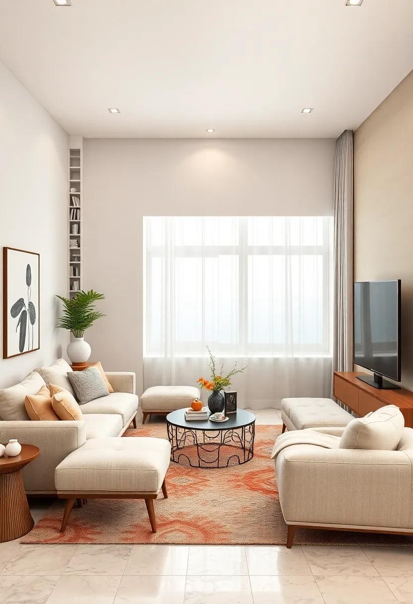 Transform your small minimalist living room with the flexibility that modular seating brings. These innovative furniture pieces allow you to effortlessly reconfigure your space based on your needs, whether you’re hosting a gathering or enjoying a quiet evening in solitude. Consider options like modular sofas, sectional chairs, or ottomans that can be rearranged to create intimate conversation areas or expand for larger groups. The seamless integration of neutral tones will ensure a cohesive aesthetic throughout your space, enhancing the serenity of your environment.