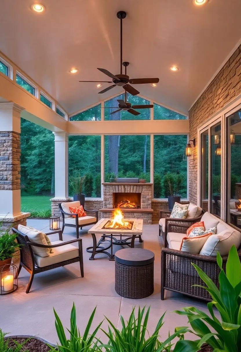 To truly enhance this dreamy space, incorporate elements that promote warmth and serenity. Surround the fire pit with natural stone or fire-safe tiles for an upscale, rustic vibe.Consider adding the soothing nuances of hanging lanterns or twinkling fairy lights across the ceiling, casting a soft glow that dances with the flicker of the flames. Plants, such as ferns and potted succulents, can be placed on accent tables or in the corners, infusing life and color into the structure. By blending style with functionality, your screened enclosure will offer an enchanting environment where family and friends can gather, share stories, and create lasting memories, all under the comfort of the stars and without the annoyance of pesky insects.