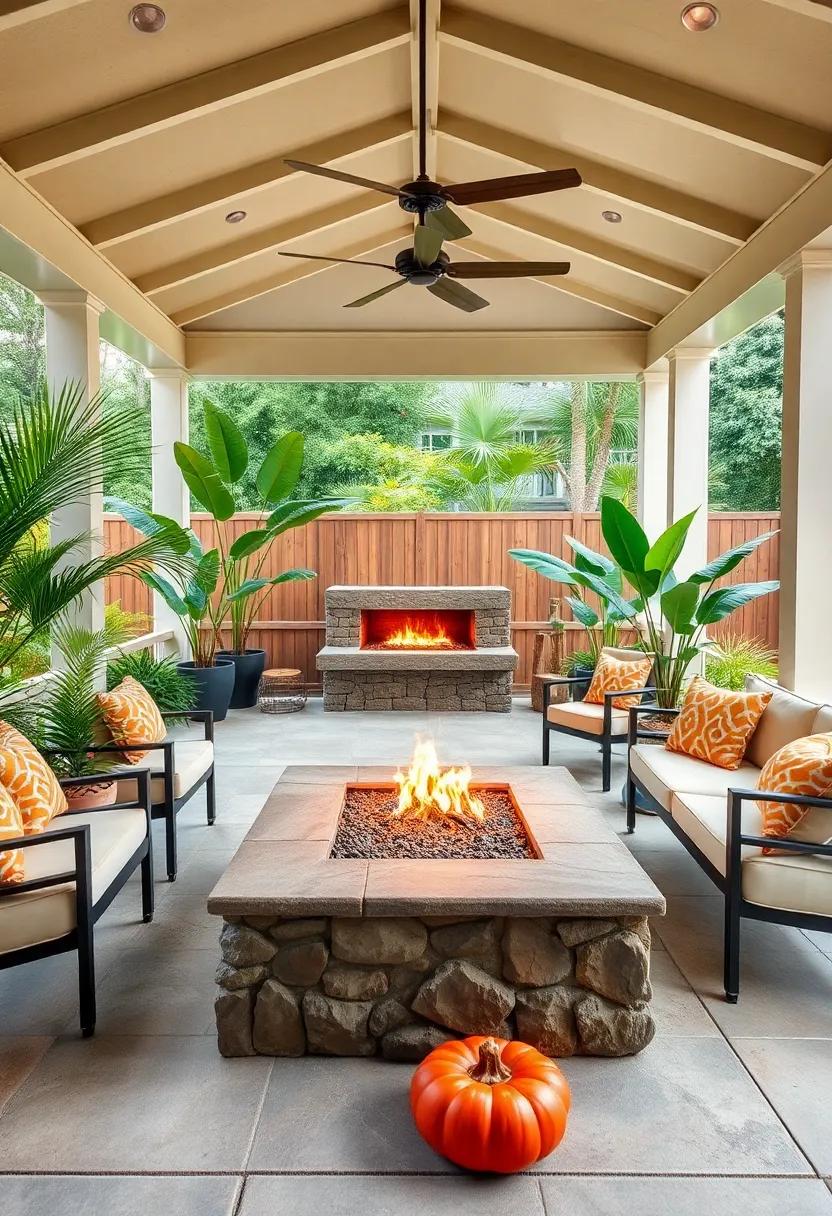 Tropical Oasis: Introduce lush greenery and vibrant decor along with a fire pit made of natural stone, creating a paradise-like escape right in your backyard