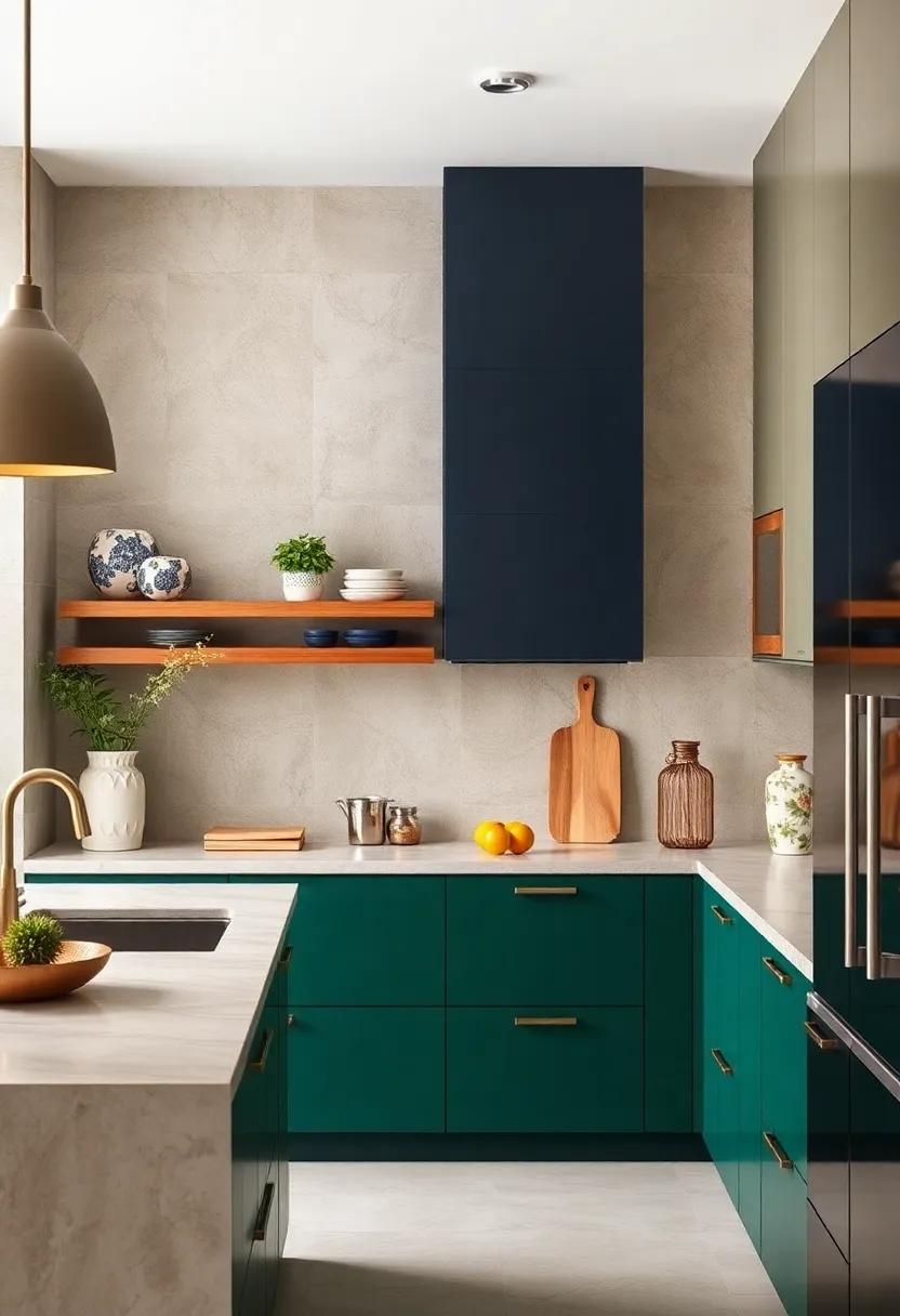 Bold Colors: Make a statement by opting for rich hues like deep navy or vibrant emerald green for your cabinets, adding personality and flair to your cooking space