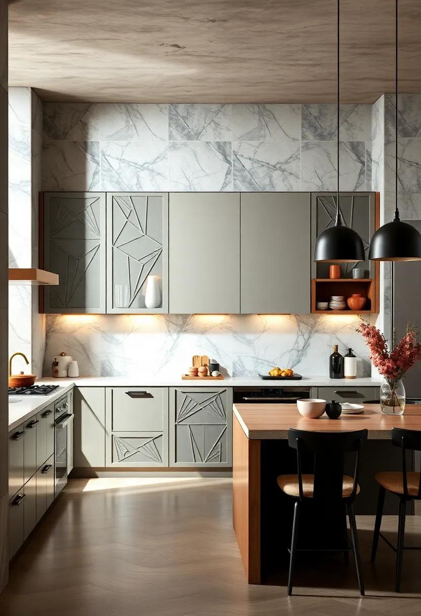Elevate the aesthetic of your kitchen by incorporating cabinets adorned with geometric patterns or intricate moldings.These artistic designs can serve as the highlight of your culinary space, turning everyday materials into works of art. Imagine cabinets with bold, overlapping shapes in a contrasting color palette-this not only adds visual dynamism but also makes a striking statement. By choosing a design that reflects your personal style, you can transform functional storage into a conversation starter, blending form and function seamlessly in your modern kitchen.