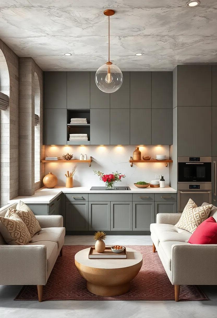 - Open Shelving: Showcase decorative dishware or plants against darker cabinets for dramatic effect.