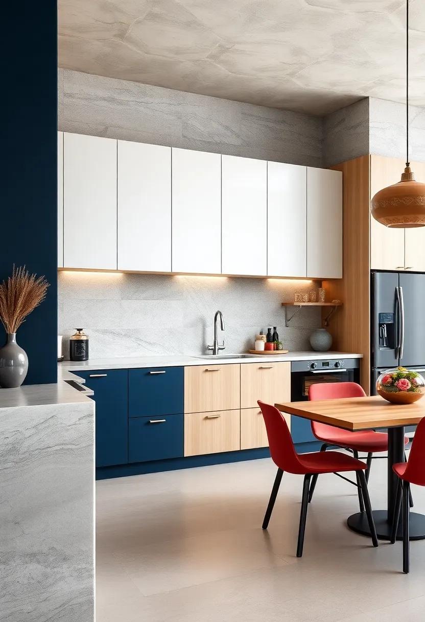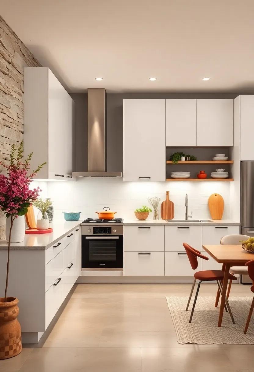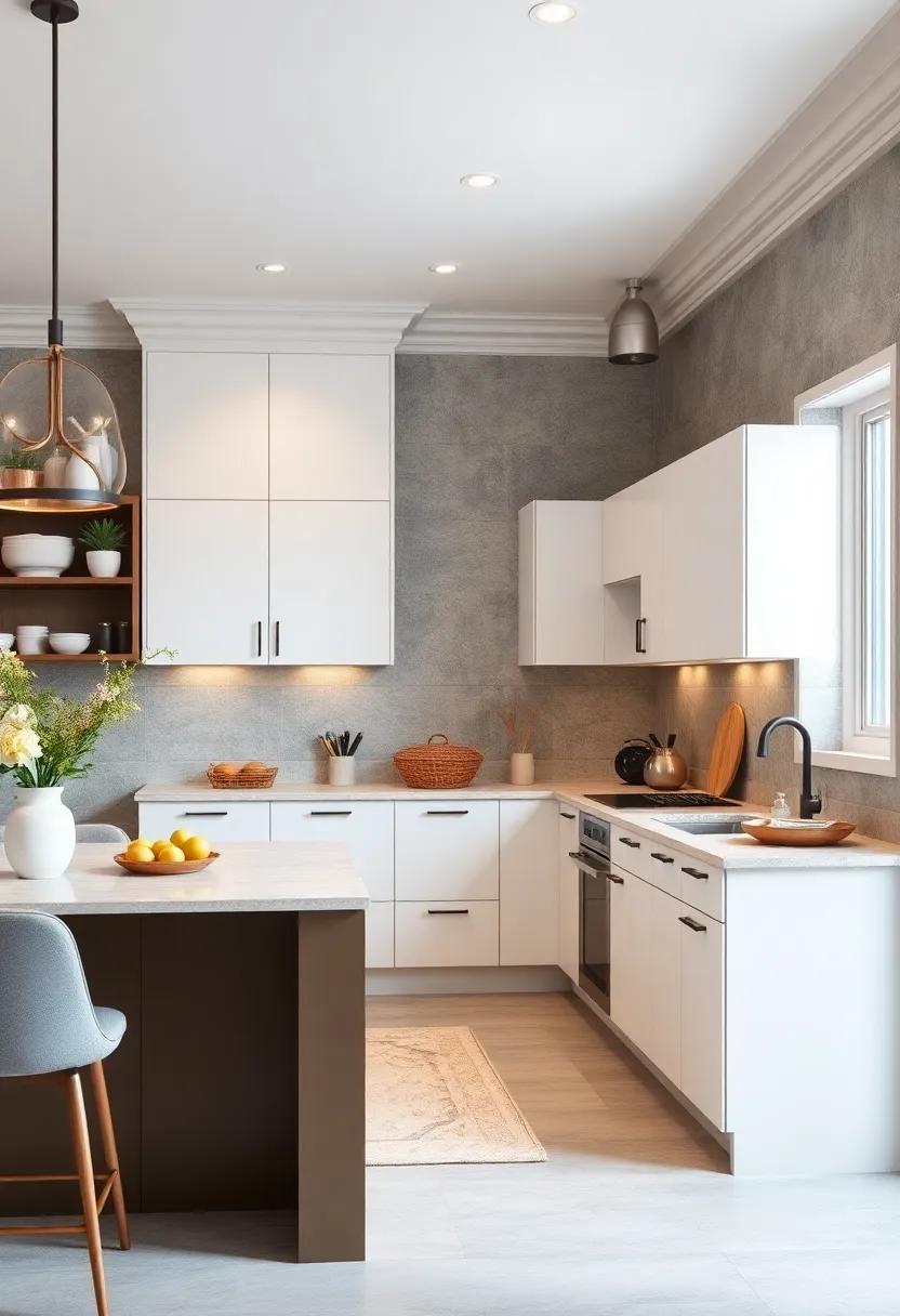 - Accent Colors: Incorporate bolder shades for island cabinets or shelving to create an eye-catching contrast.