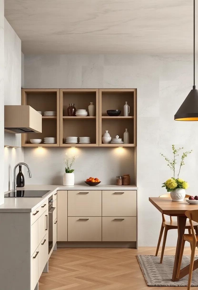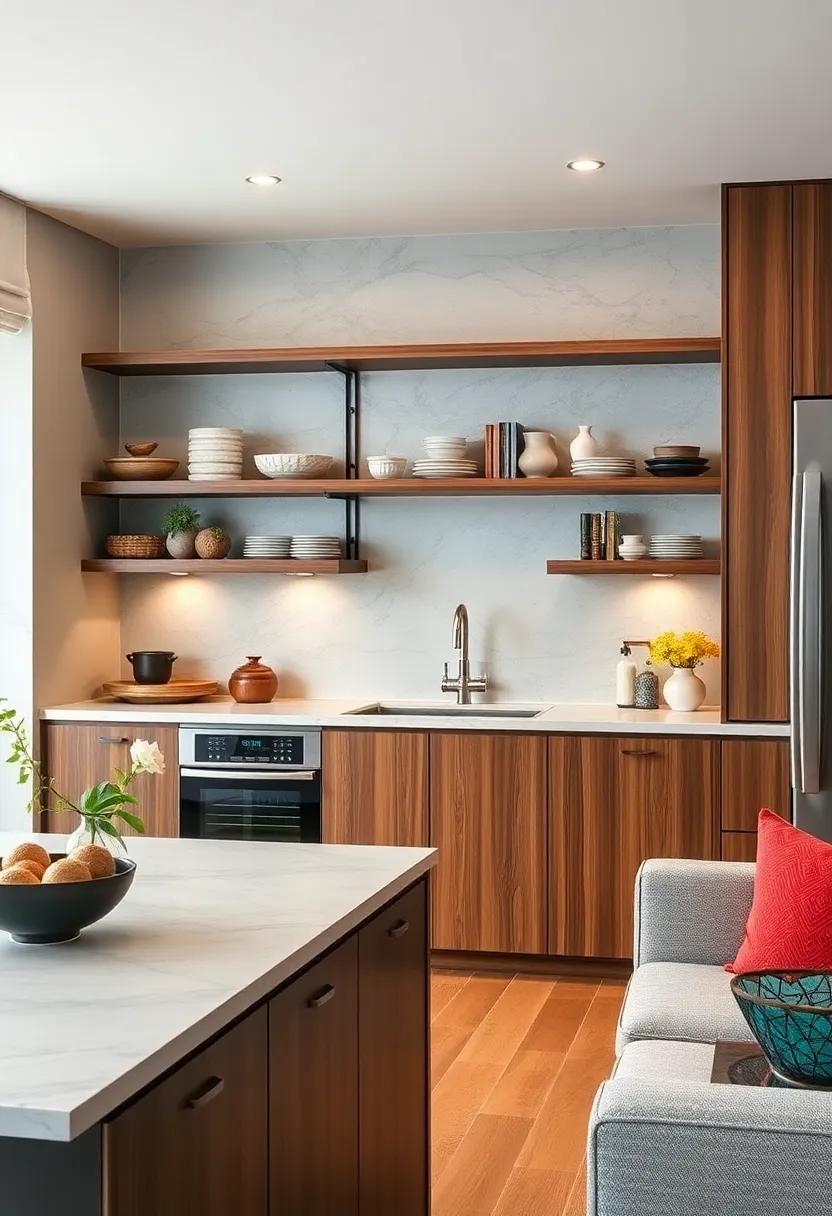 - Open Shelving: Blend closed cabinets with open shelving for a trendy display of your favorite dishes and decor.