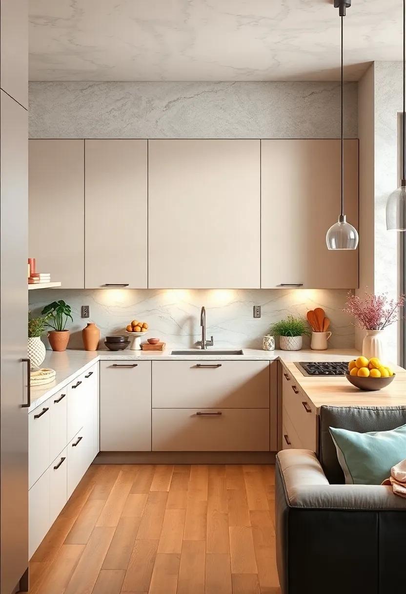 To further enhance the aesthetic appeal, consider adding elements like hidden pulls or push-to-open mechanisms for a seamless look. Incorporating textural contrasts through materials such as matte finishes or glossy tiles can add depth without sacrificing simplicity. A well-thought-out color palette, alongside carefully curated decor, can complement the understated elegance of your cabinets, ensuring your kitchen remains a functional yet stylish sanctuary. With the right approach, this design can transform any kitchen into a modern masterpiece.