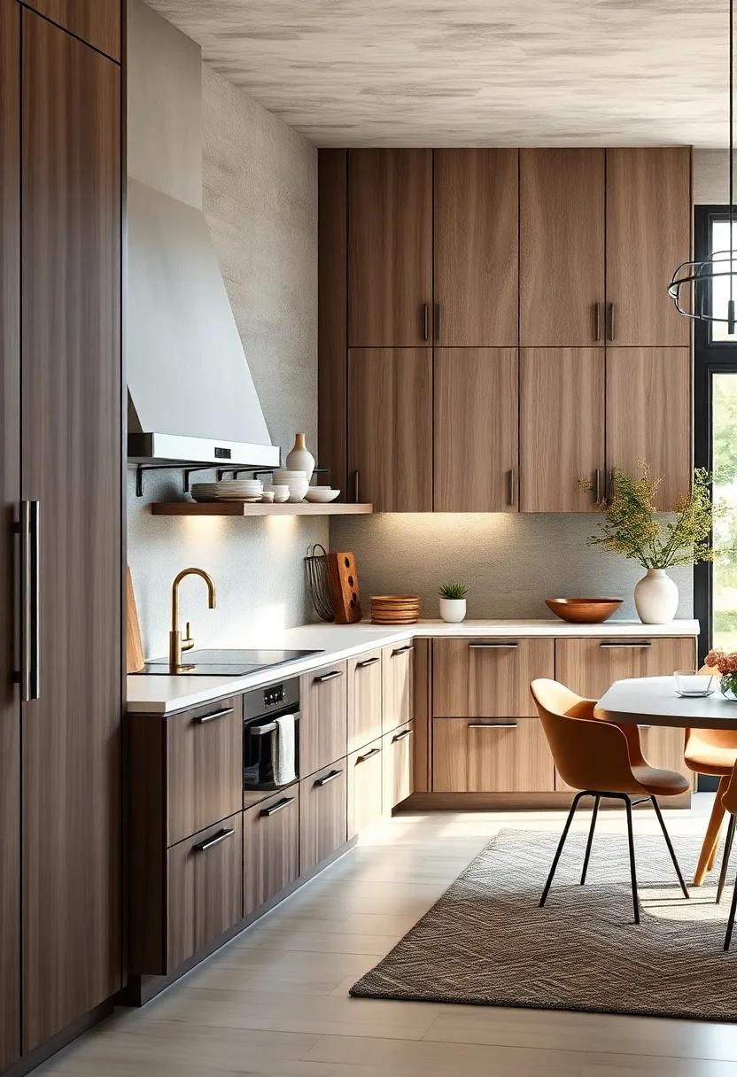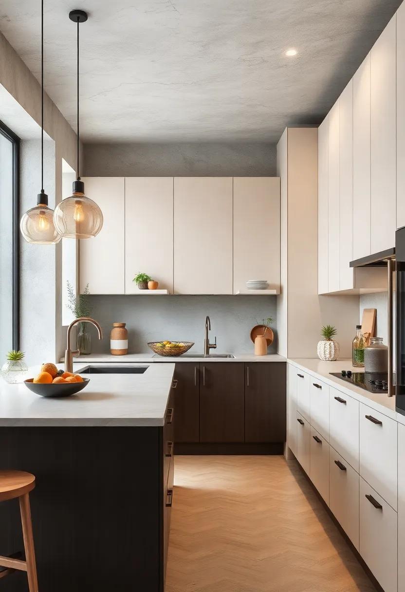 Industrial Chic: Combine metal accents with wood or laminate cabinets to create an industrial vibe, embracing raw finishes and urban influences