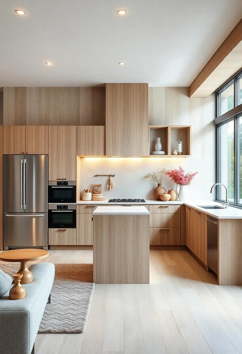 White Oak Elegance: Use white oak cabinets with their fine grain and pale finish that offer a touch of warmth and sophistication to modern kitchen designs