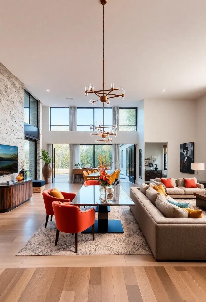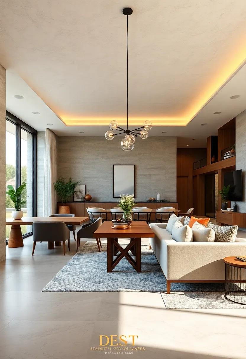 Furniture placement plays a crucial role in defining these zones. For a harmonious look, consider clustering pieces such as a settee and a pair of accent chairs to create an intimate conversation area within the living room. In contrast, a long, slender console table can work wonders in delineating the dining area while providing visual interest. Utilize floating shelves or decorative dividers filled with plants and art as additional separators. Ultimately, the clever arrangement of furniture combined with thoughtfully chosen rugs will not only enhance the aesthetic appeal but also maintain an airy feel throughout the expansive space.