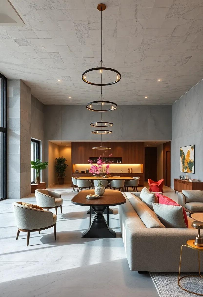 Statement Lighting: Highlight how unique light fixtures can serve as stunning focal points that connect the dining and living areas in a cohesive design