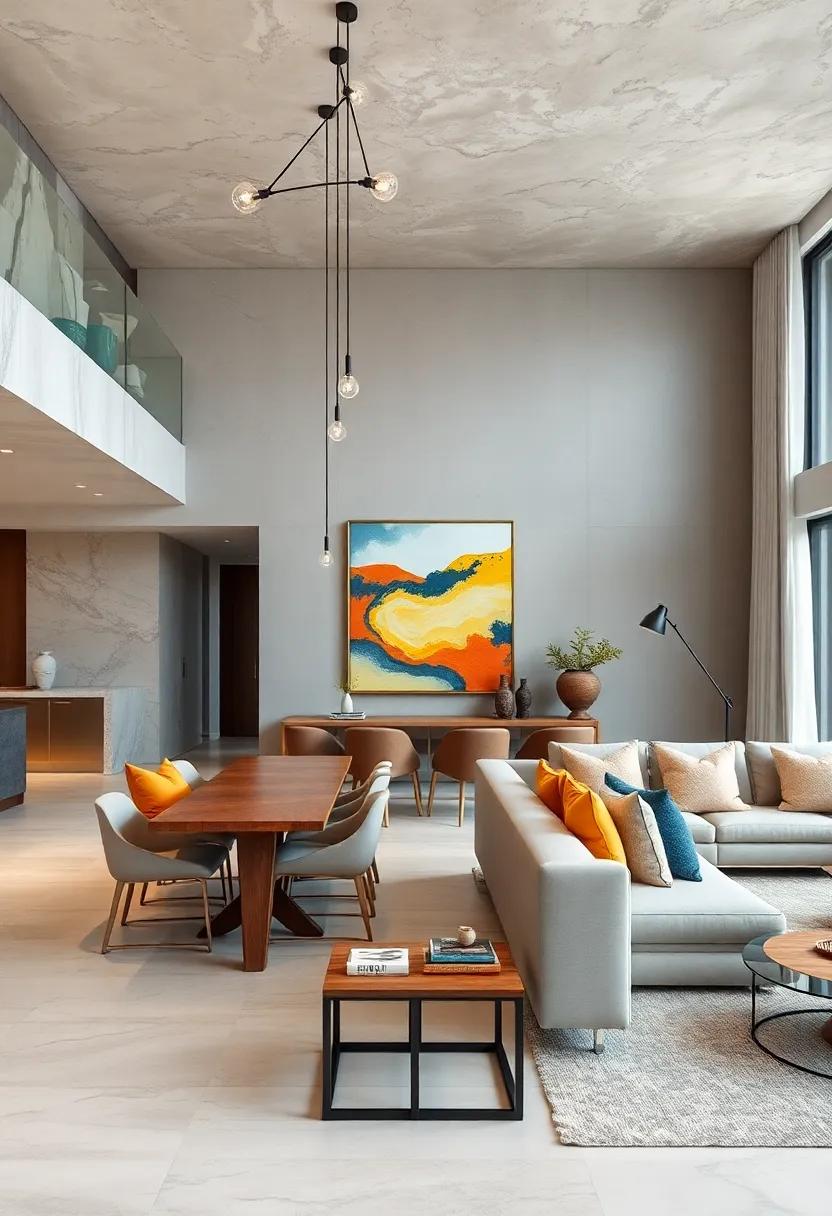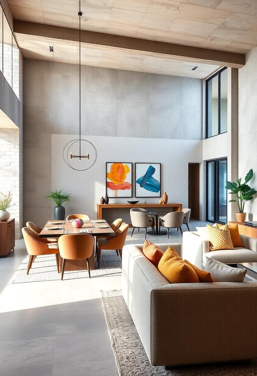 Bold Artistry: Use oversized art pieces to draw attention and establish a dialogue between the living and dining areas, invigorating your space with personality