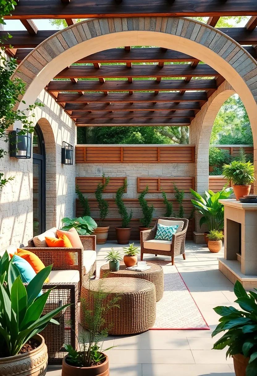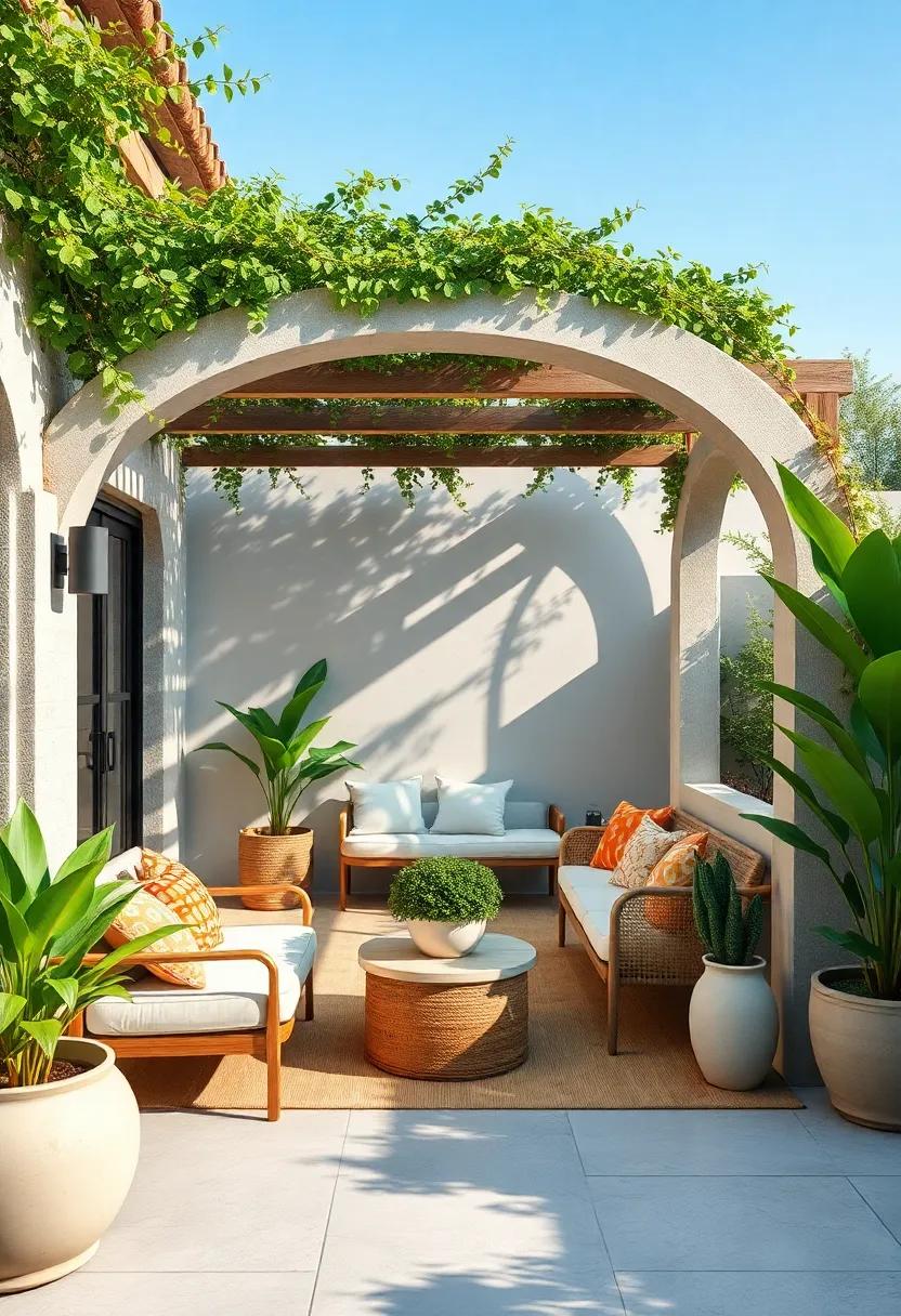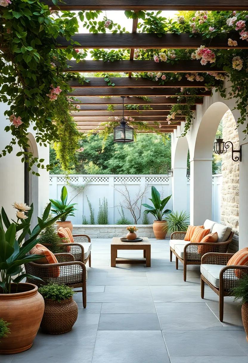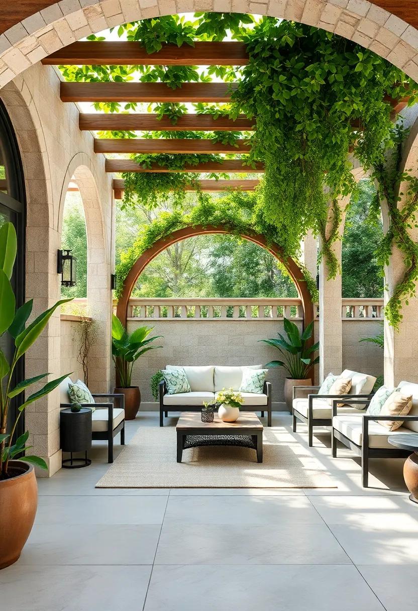 Transform your outdoor seating area with a modern arched trellis that seamlessly blends functionality and style. Sleek metal designs deliver a minimalist charm while offering a robust framework for your favorite climbing plants. Picture a chic seating arrangement beneath the curve of the trellis, where vibrant vines cascade gracefully, adding bursts of color and texture. Utilize the trellis not just as a structural feature, but as a conversation starter, as guests marvel at how it enhances the overall ambiance of your patio.