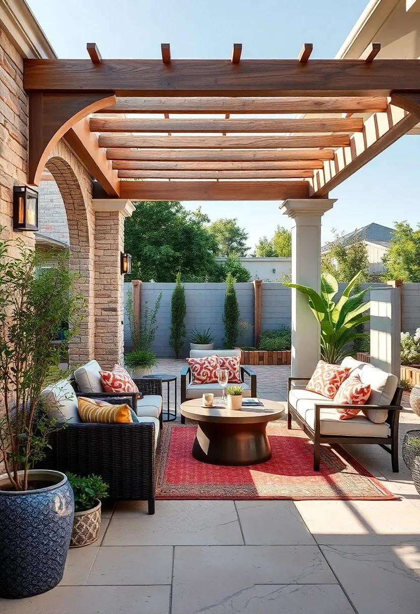 | Outdoor Rugs | Patterned rugs that define the seating area and add warmth. |