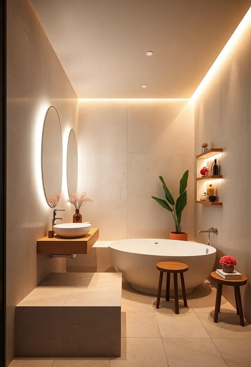 Concealed Lighting: Incorporate LED strip lighting behind mirror edges or under shelves for a soft, indirect glow