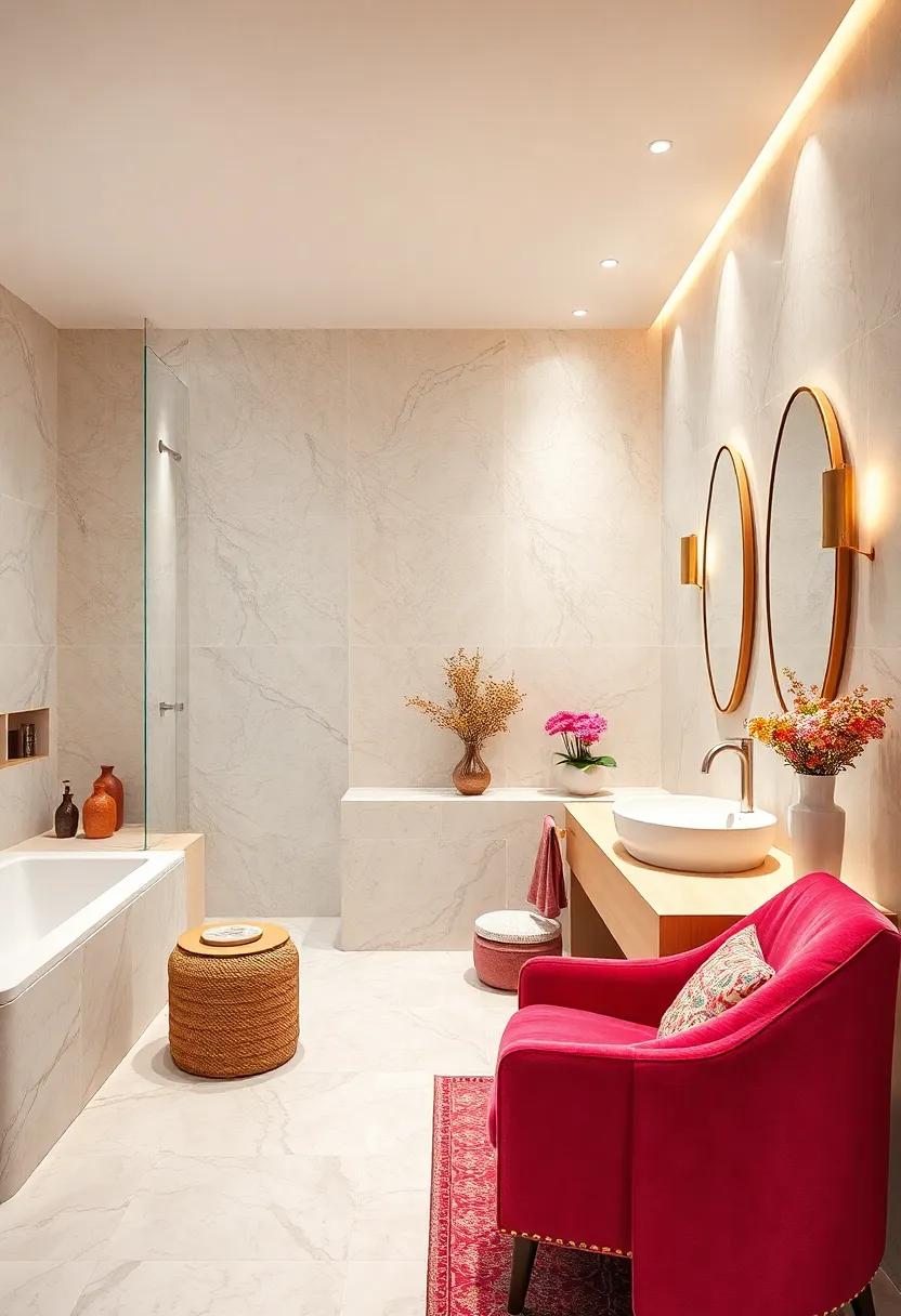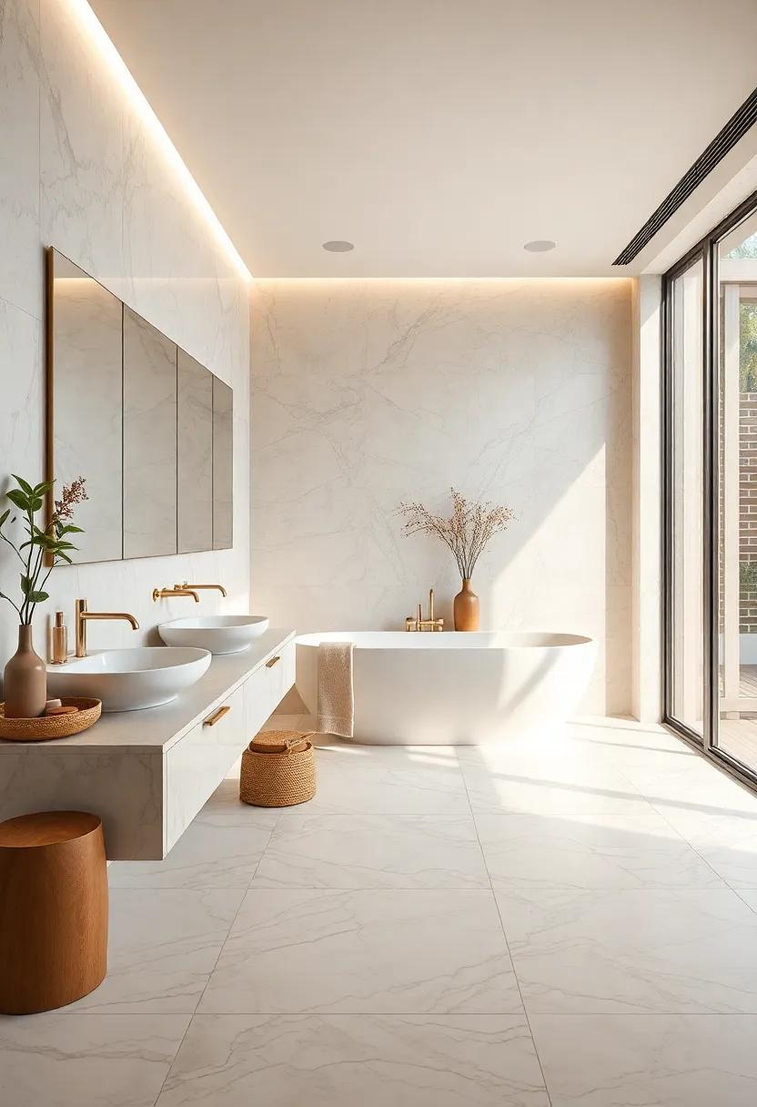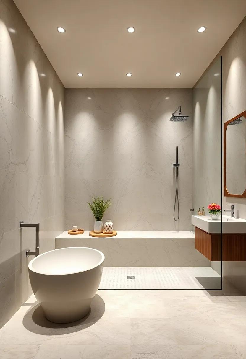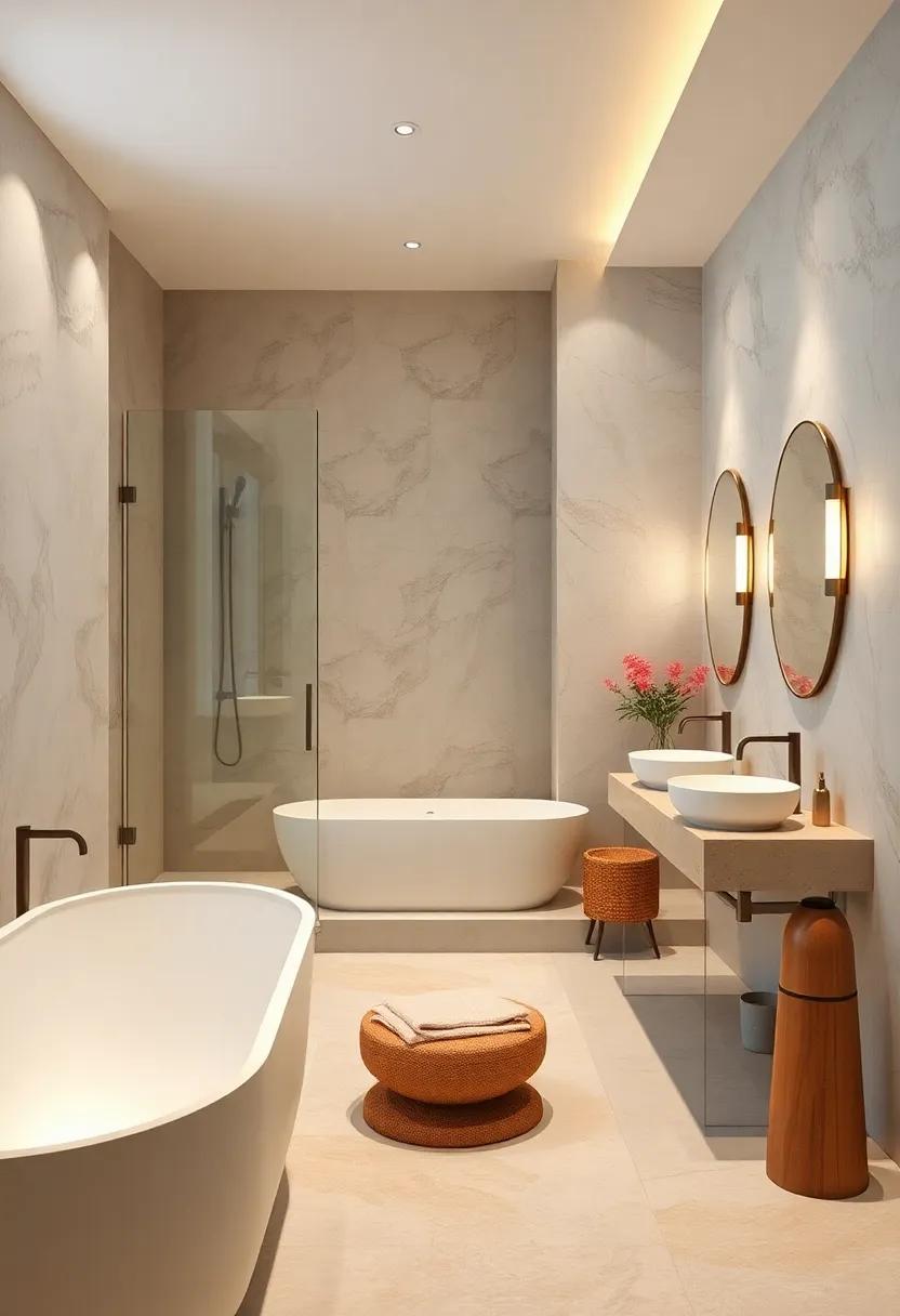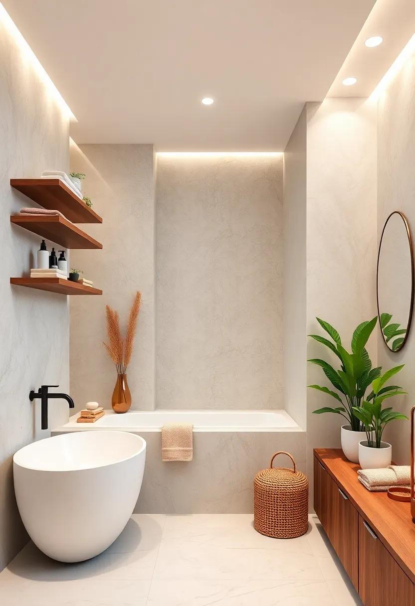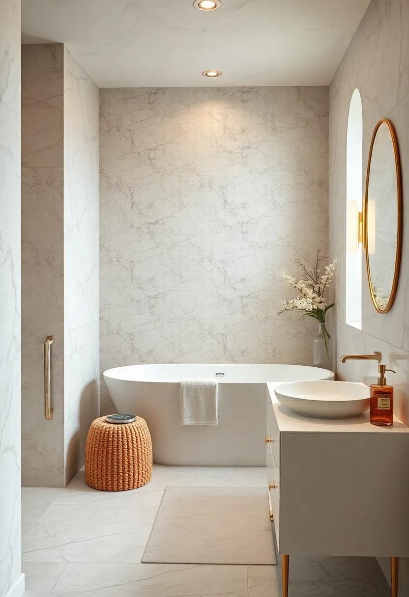 - Texture Contrast: Incorporate textured elements such as plush towels or organic cotton fabrics to balance the sleekness of the walls.