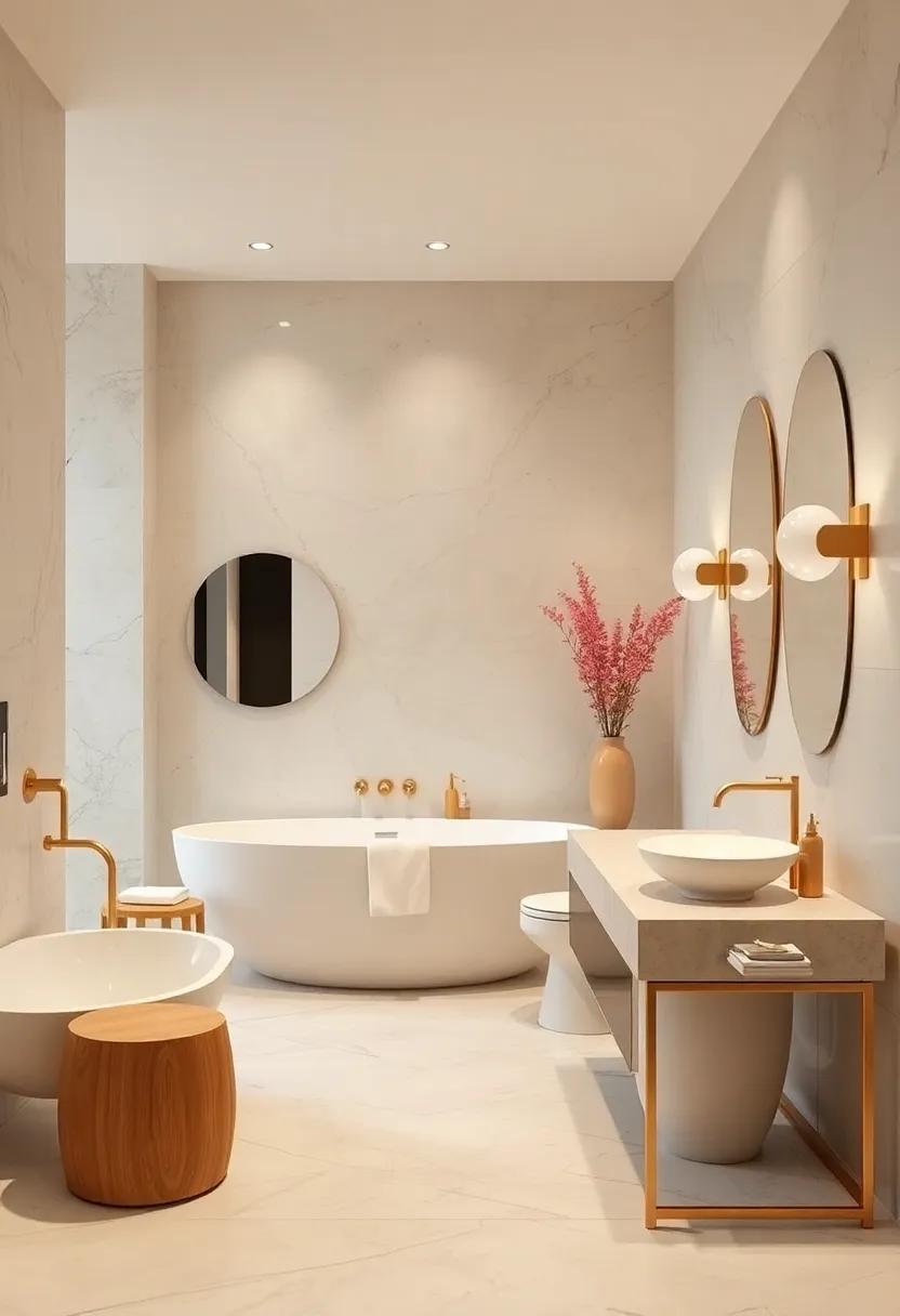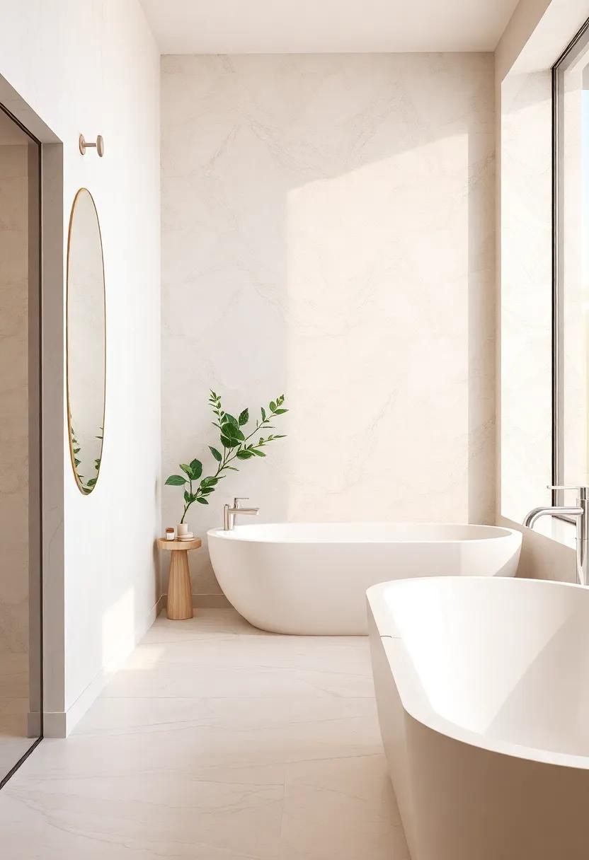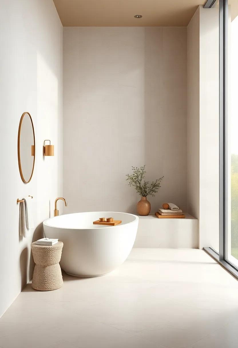 Freestanding Bathtub: Opt for a sculptural freestanding bathtub in a smooth, creamy finish to serve as a stunning centerpiece in your bathroom oasis