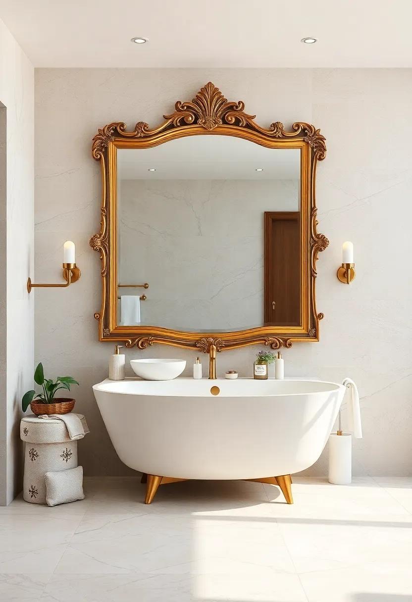 Mirror Magic: select an oversized ornately framed mirror to amplify light and create a sense of depth in your bathroom