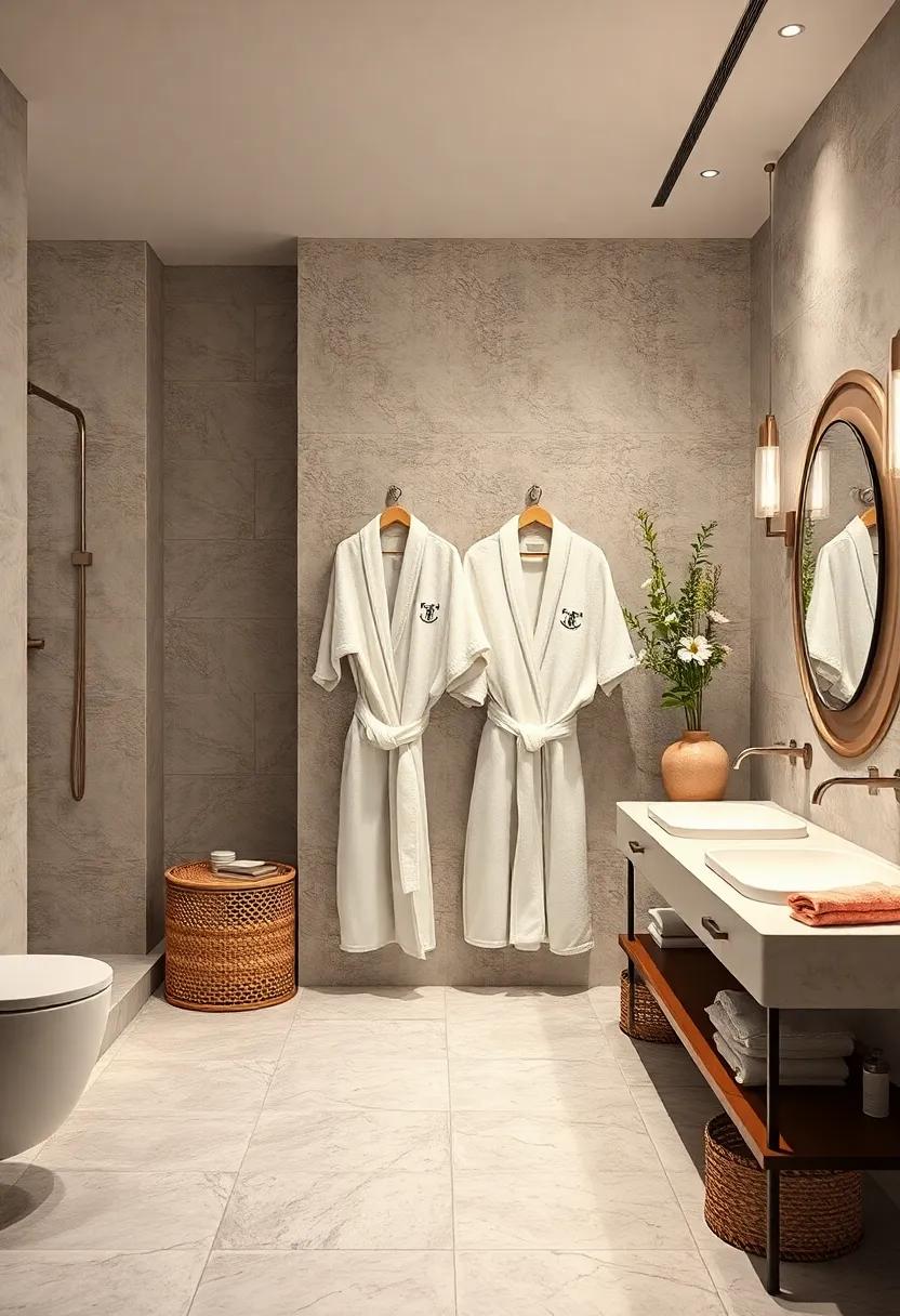 Plush Bathrobe Station: Create a cozy cocoon by hanging plush ivory robes ready to wear after a soothing soak