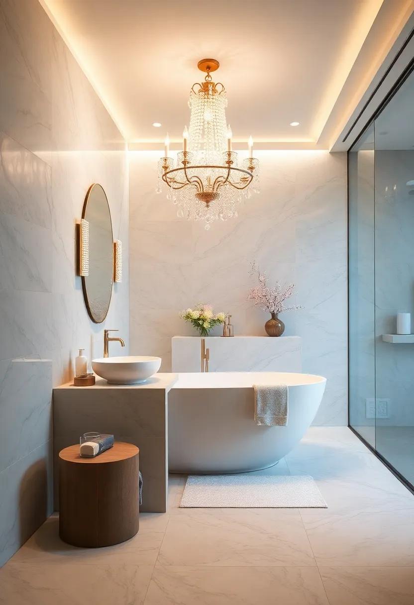 Transform your bathroom into a sanctuary of elegance with a stunning chandelier that captivates the eye.Opt for a piece adorned with crystal and pearl details that gleam in the ambient light, creating an ethereal glow that dances across the room. The juxtaposition of the delicate pearls against the sparkling crystals not only enhances the opulence of your space but also adds a layer of sophistication that is truly breathtaking. Imagine stepping into your bathroom under the enchanting allure of such a fixture; it becomes not just a source of illumination, but a centerpiece that sets the tone for your entire retreat.