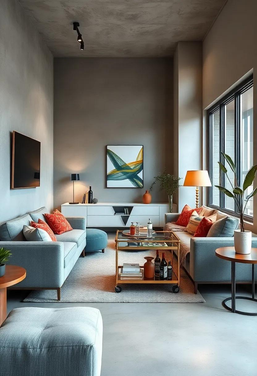 A compact bar cart serves as both a stylish statement piece and a functional addition to any small living room, effortlessly enhancing your entertaining game without overwhelming the space. Versatile and mobile, these carts can be wheeled into the main gathering area or tucked away when not in use, making them perfect for multifunctional living environments. Elevate your setup by incorporating essential items like cocktail shakers, mixers, and glassware, all easily accessible. This not only adds a touch of elegance but also keeps everything organized in one spot.