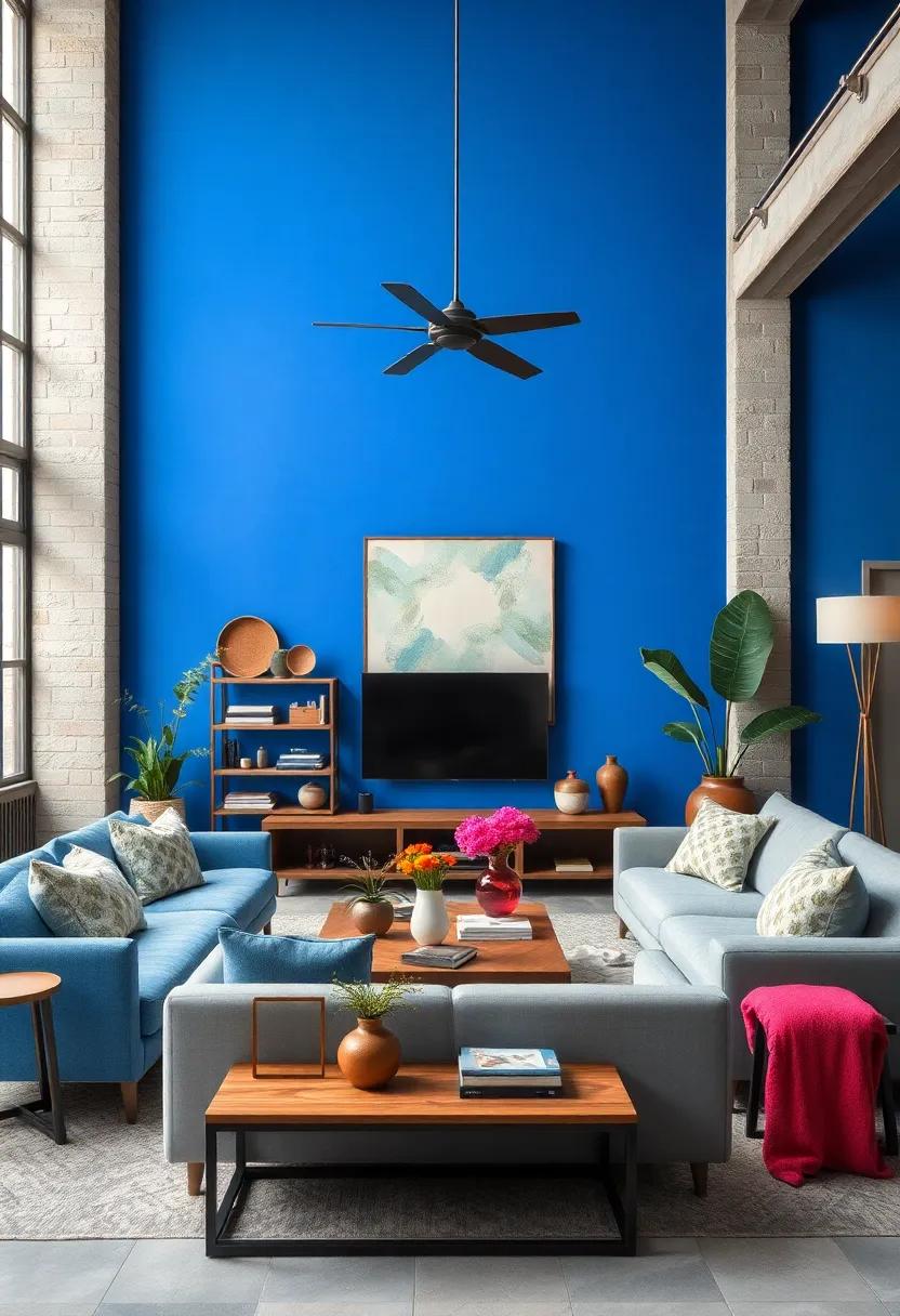 Transforming a single wall into a statement piece with a rich, deep cobalt blue fabric can add an unexpected twist to an industrial living room. the fabric not only enhances the room’s acoustic properties but also creates a plush contrast against raw, exposed elements like brick or metal. To amplify this bold choice,consider incorporating lighter hues in other decor elements. Shades like soft beige, pale gray, or even crisp white can serve to balance the boldness of the cobalt, while still reflecting its vibrant energy. Accentuate the wall’s impact by using minimalist furniture in complementary colors, allowing the wall to remain the focal point without overwhelming the senses.