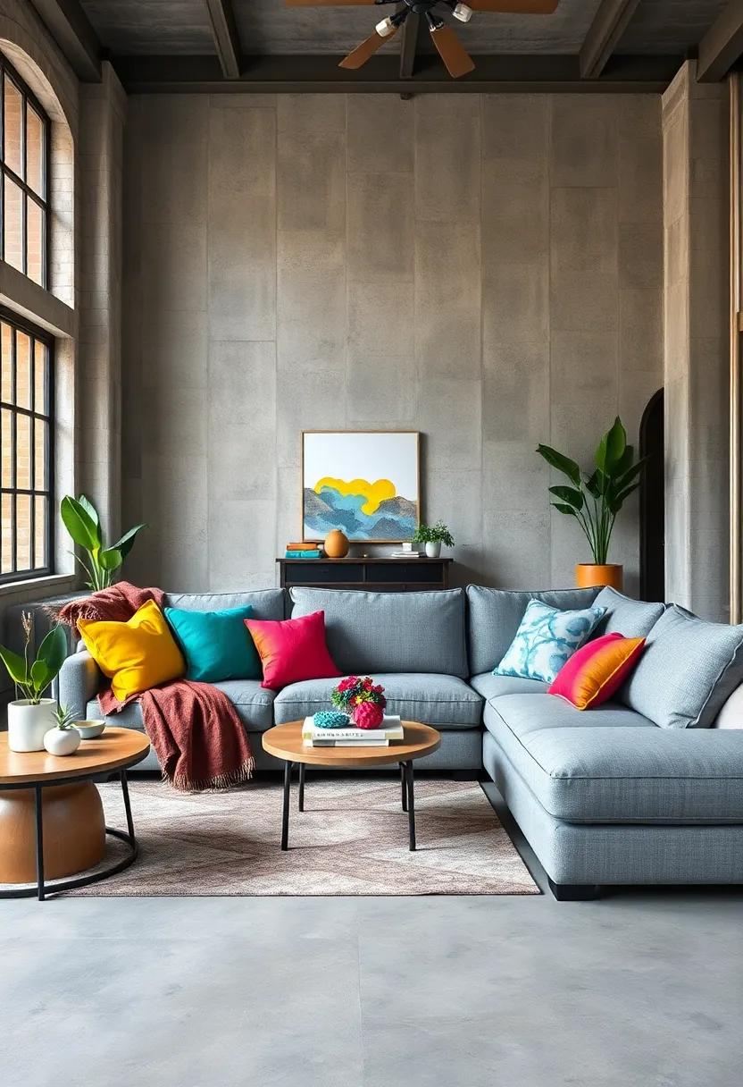 Transform a gray sectional into a vibrant masterpiece by layering throw blankets and cushions that burst with colors and patterns. Choose bold hues such as fiery reds, lush greens, and sunny yellows to create a striking contrast against the industrial coolness of gray. Textures also play a crucial role-mix soft knits with velvety or geometric prints to add depth and warmth, inviting guests to snuggle up and enjoy the space. Accent pillows in various shapes can serve as playful statements, each contributing a unique flair while telling a story through their designs.