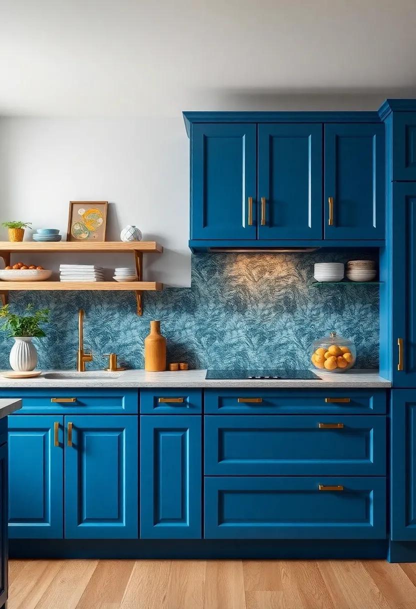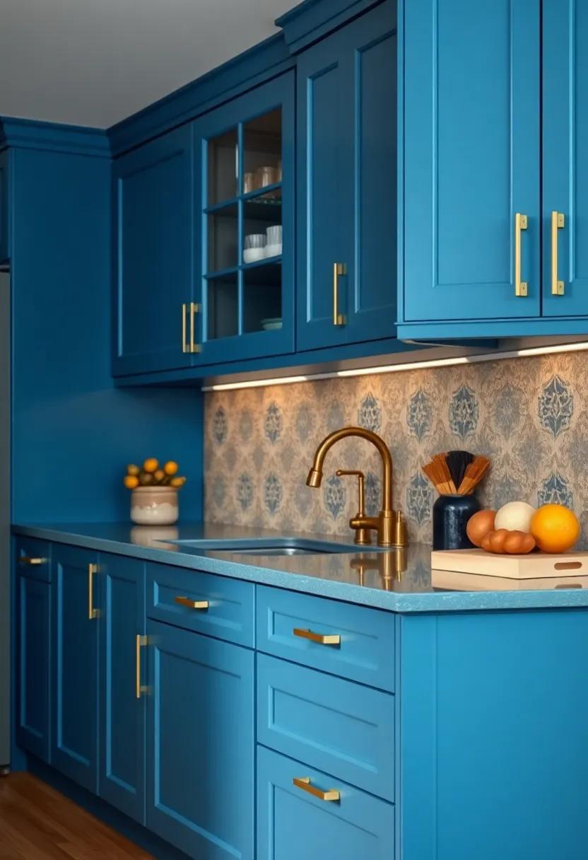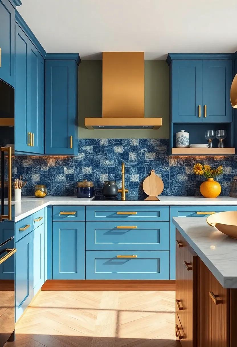 - Artistic backsplash: Use vibrant tiles that incorporate blue and gold tones.