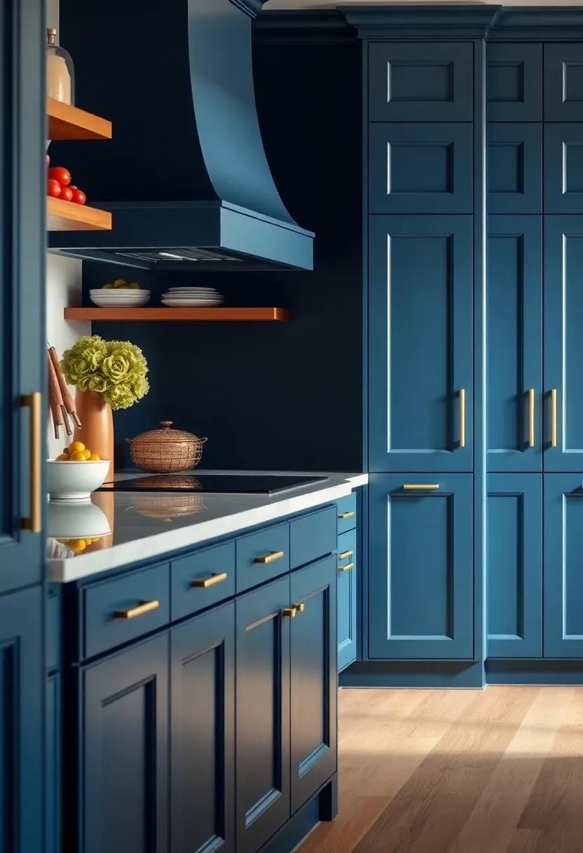 - Open Shelving: incorporate open shelving to display decorative dishware, creating visual interest against the deep blue backdrop.